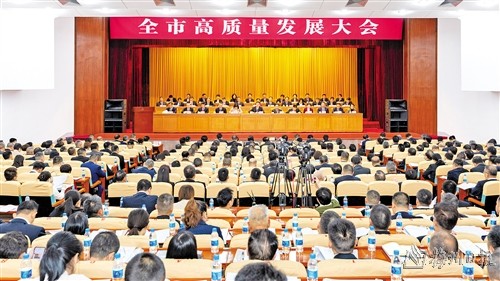 2月20日,全市高質量發展大會在梅城召開。(連誌城 攝)
