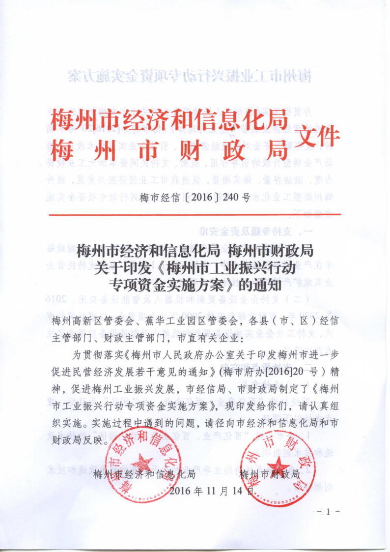 梅州市工業振興行動專項資金實施方案