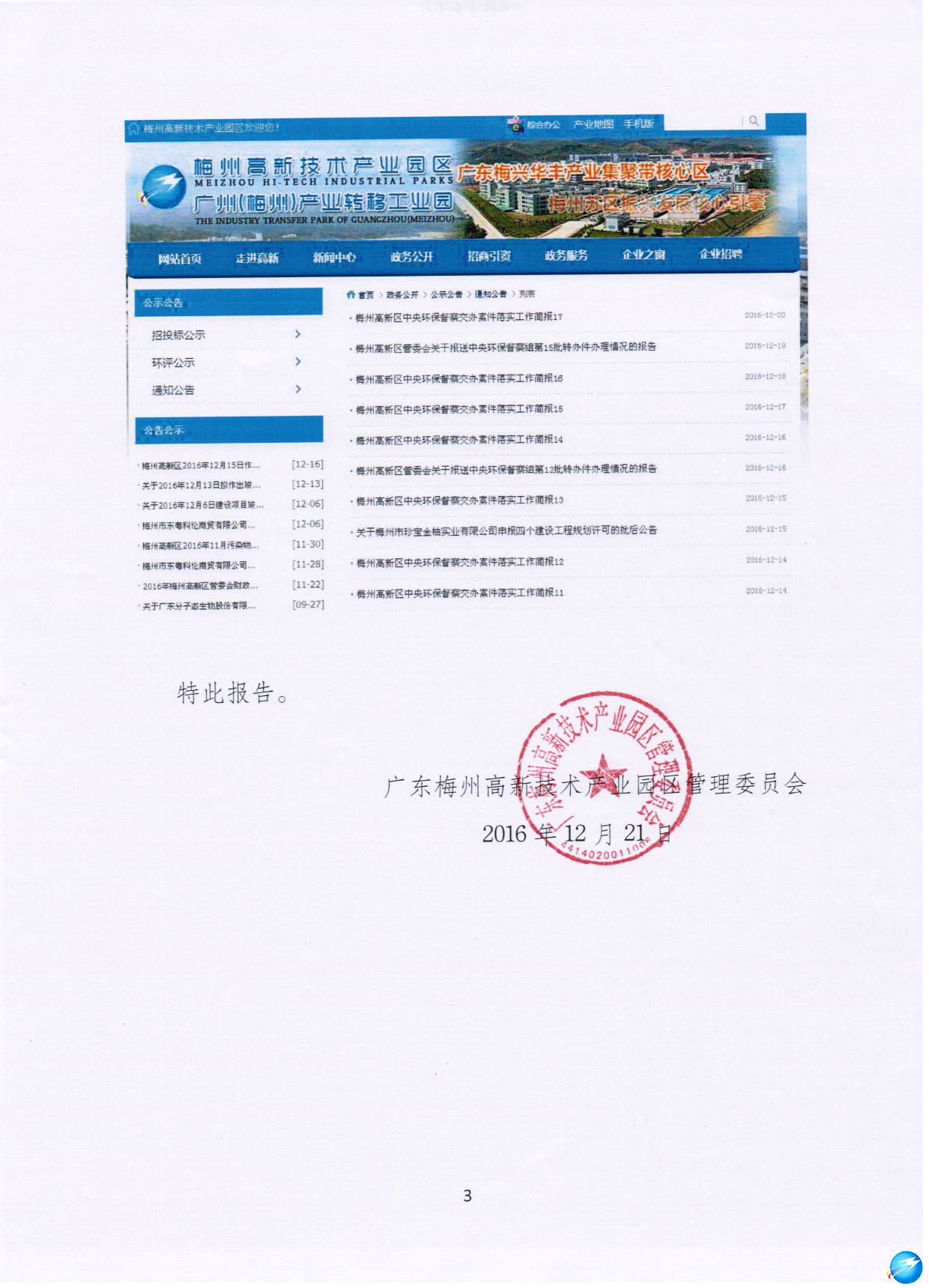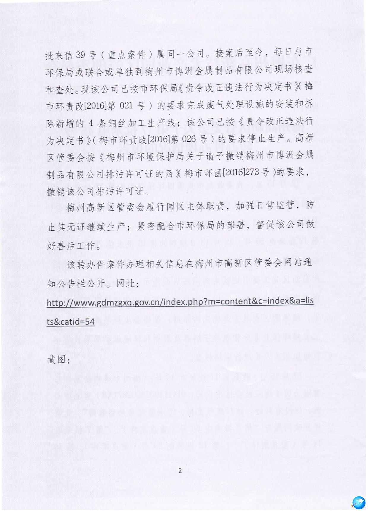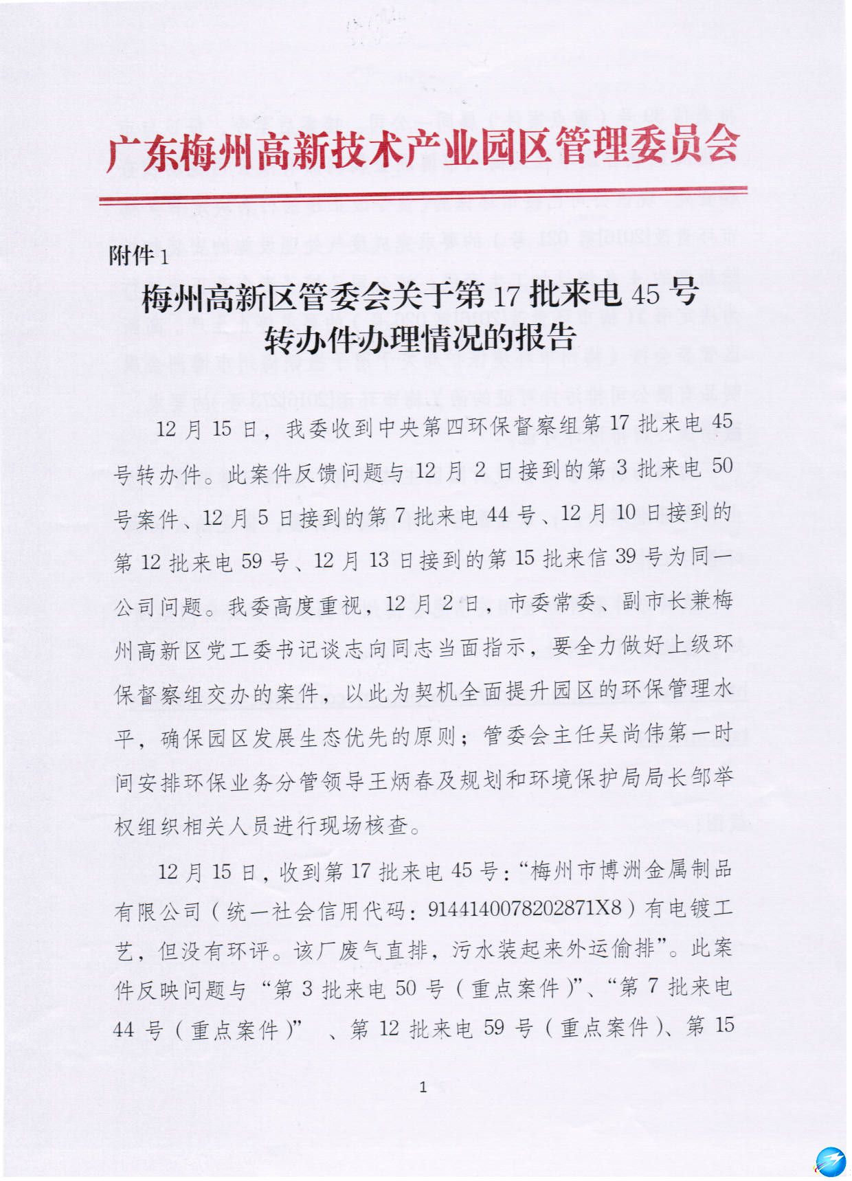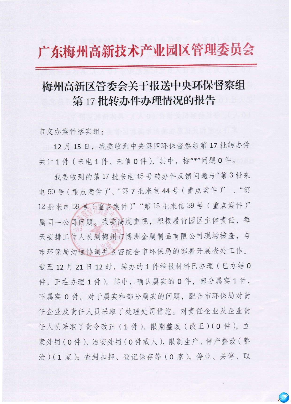 梅州市人民政府門戶網站 梅州市高新區 通知公告 梅州高新區管委會關於報送中央環保督察組第17批轉辦件辦理情況的報告