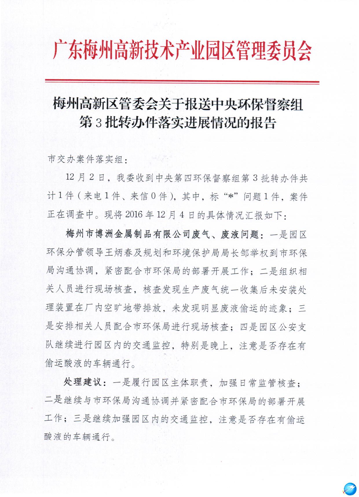 梅州市人民政府門戶網站 梅州市高新區 通知公告 梅州高新區中央環保督察交辦案件落實工作簡報2