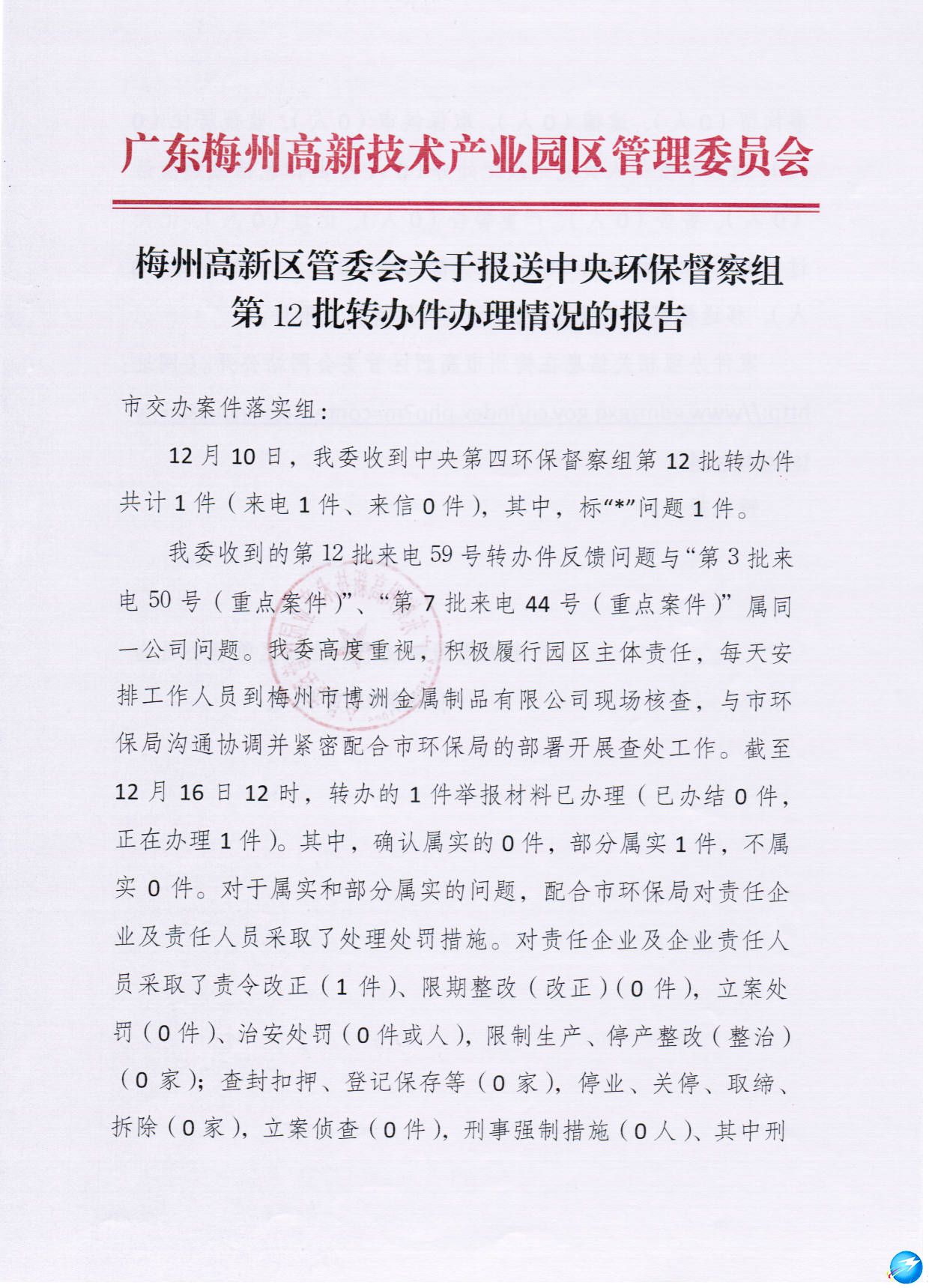 梅州高新區管委會關於報送中央環保督察組第12批轉辦件辦理情況的報告