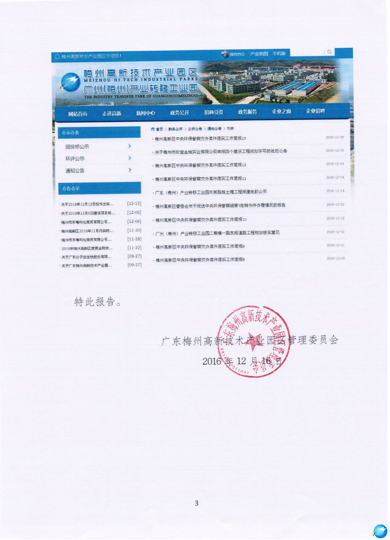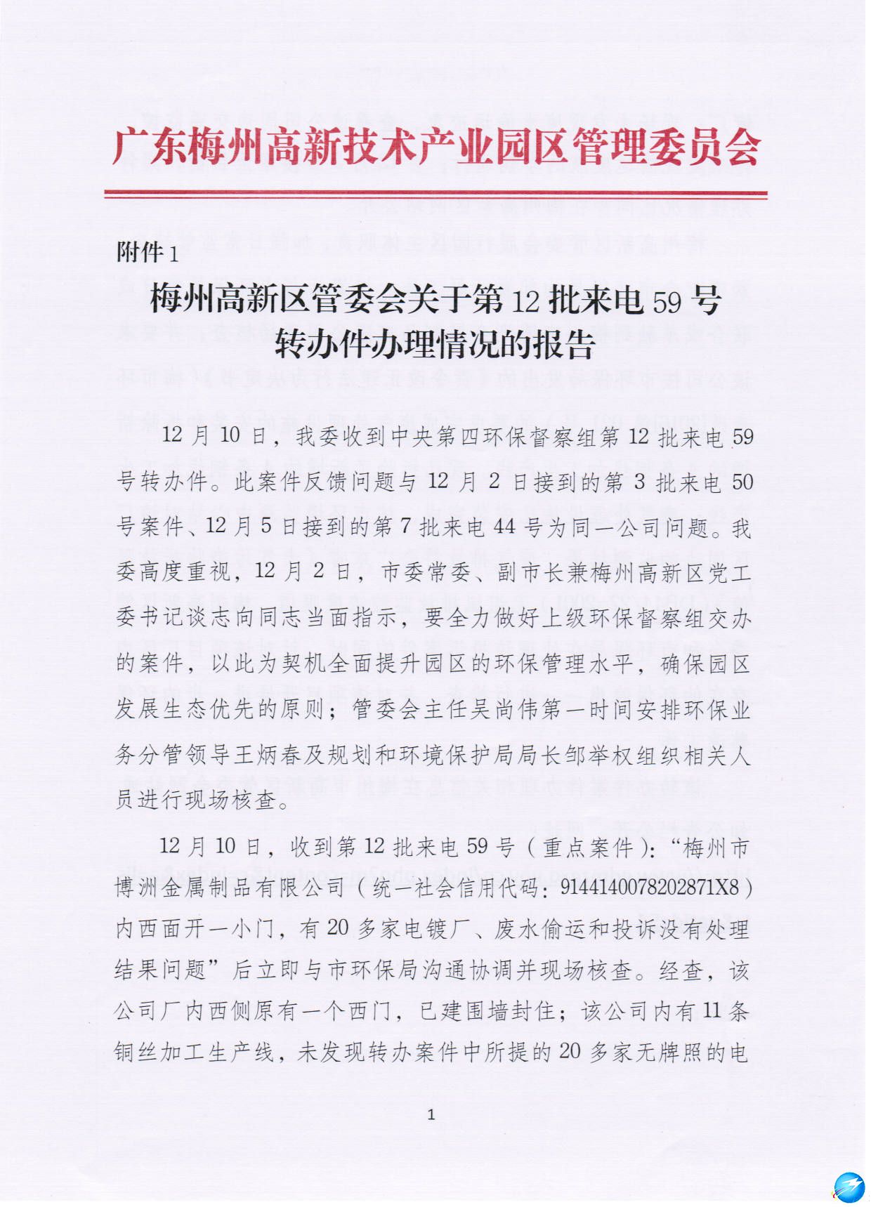 梅州市人民政府門戶網站 梅州市高新區 通知公告 梅州高新區管委會關於報送中央環保督察組第12批轉辦件辦理情況的報告
