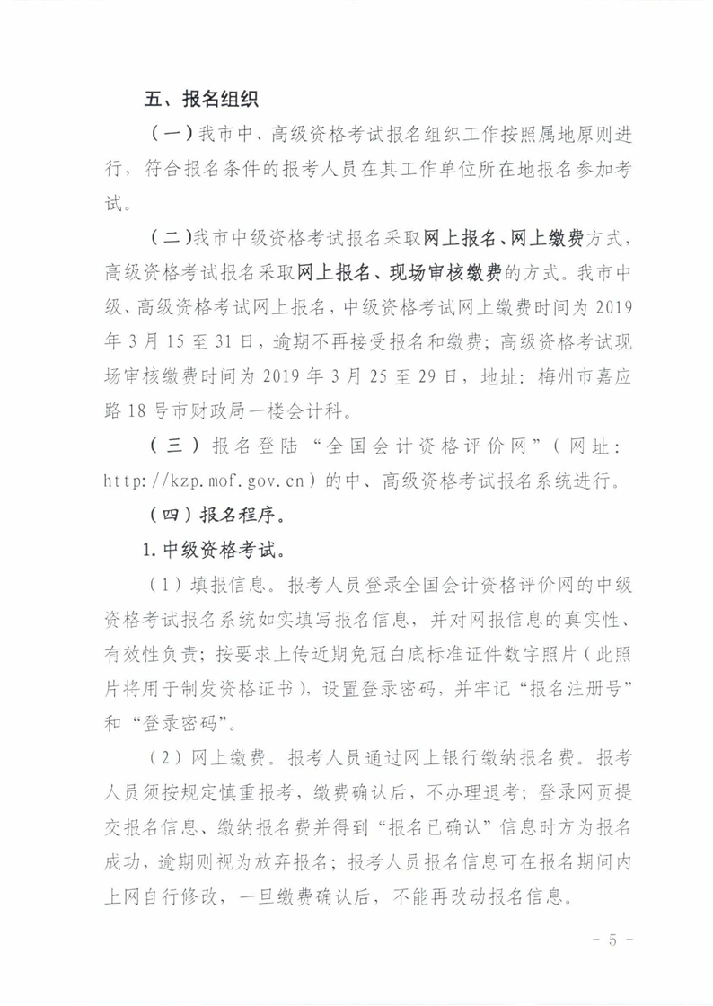 梅州市人民政府門戶網站 梅州市高新區 通知公告 關於梅州市2019年度全國會計專業技術中高級資格考試考務日程安排及有關事項的通知