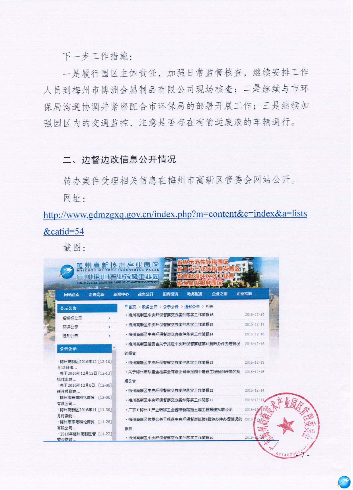 梅州市人民政府門戶網站 梅州市高新區 通知公告 梅州高新區中央環保督察交辦案件落實工作簡報17