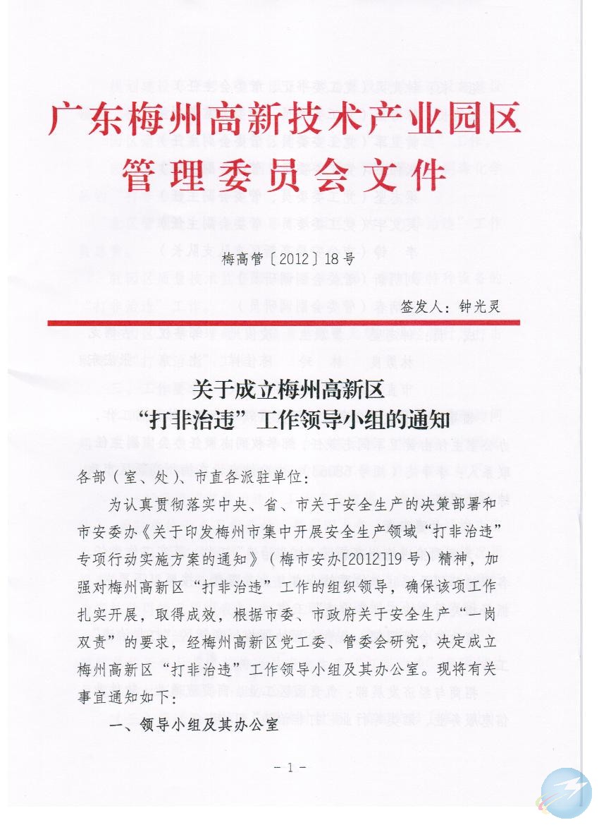 梅州市人民政府門戶網站 梅州市高新區 政策法規 關於成立梅州高新區“打非治違”工作領導小組的通知