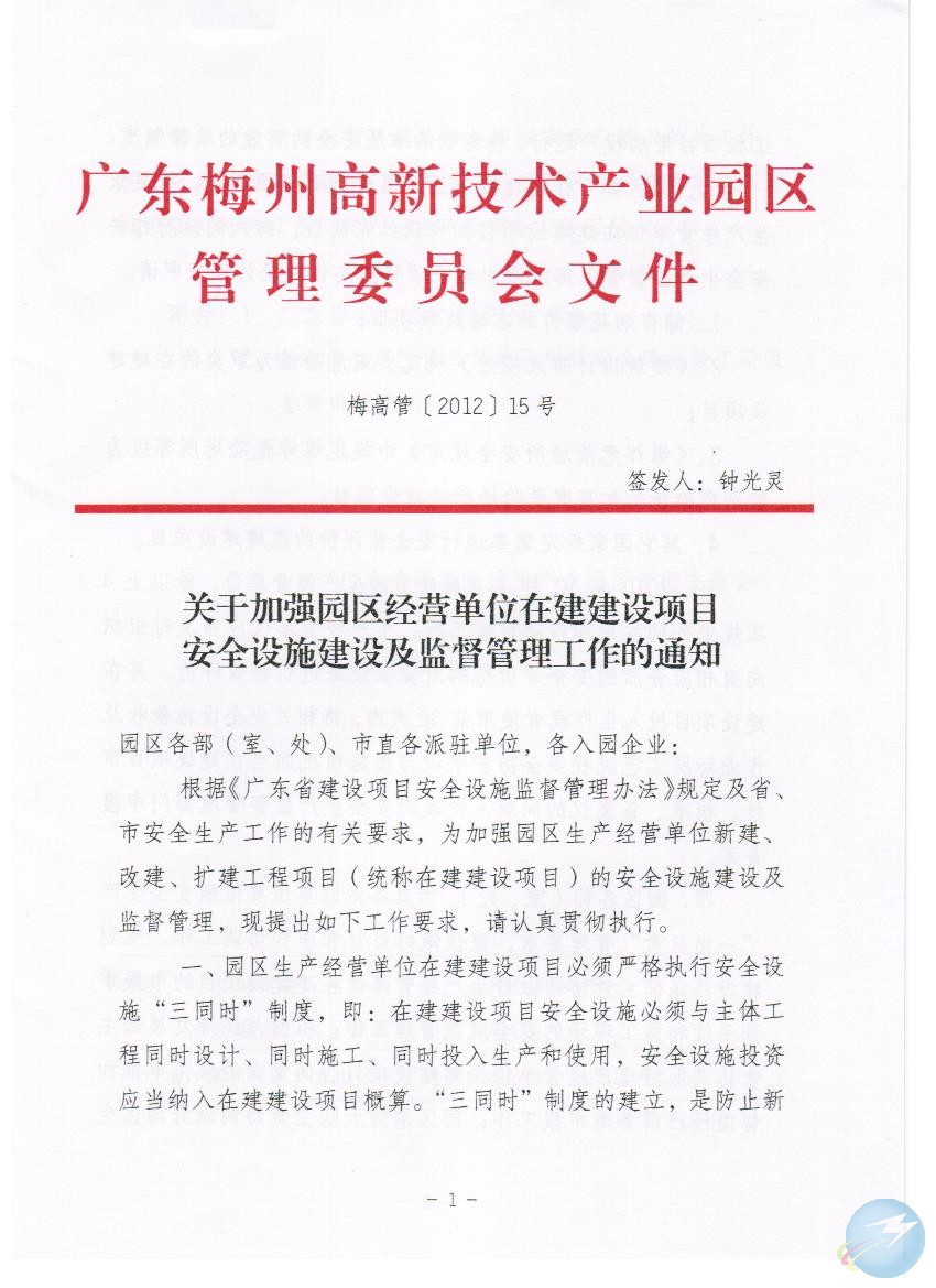 梅州市人民政府門戶網站 梅州市高新區 政策法規 關於加強園區經營單位在建建設項目安全設施建設及監督管