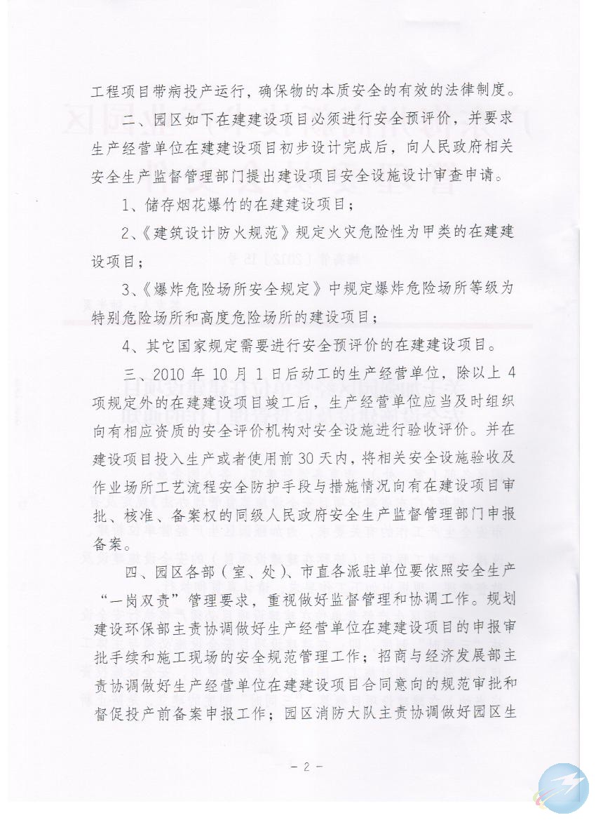 關於加強園區經營單位在建建設項目安全設施建設及監督管