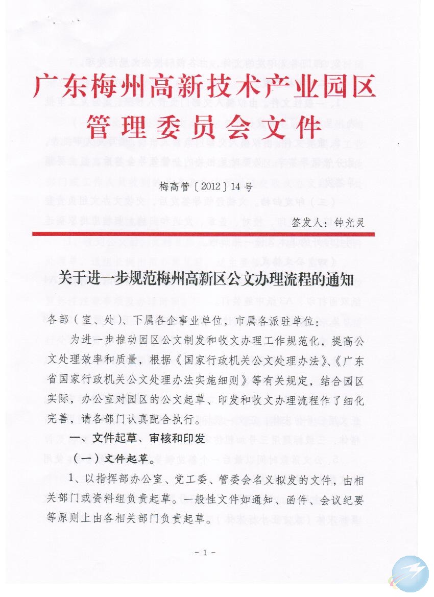 梅州市人民政府門戶網站 梅州市高新區 政策法規 關於進一步規範梅州高新區公文辦理流程的通知