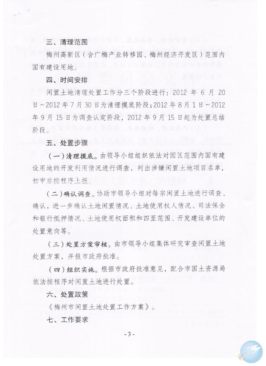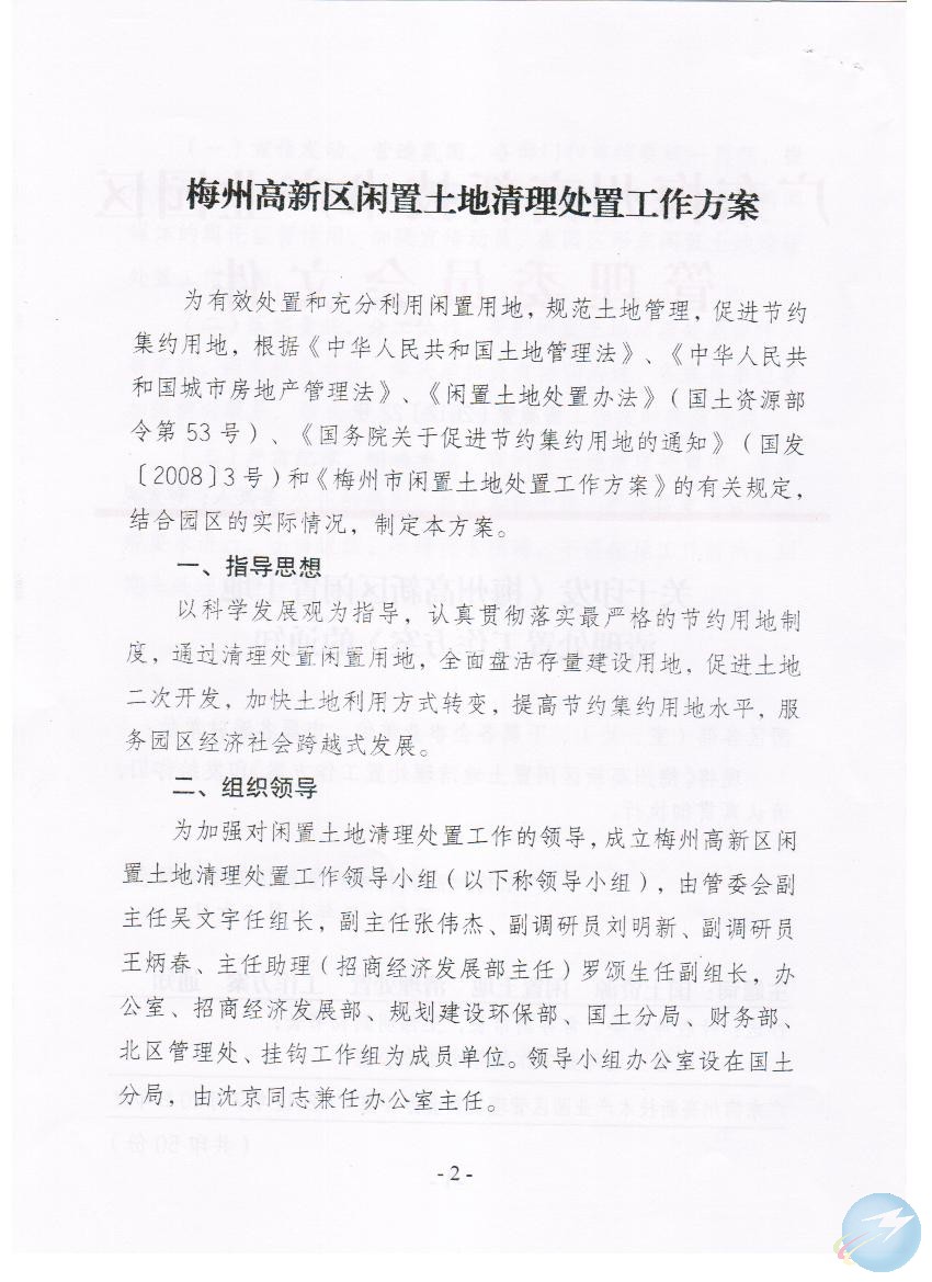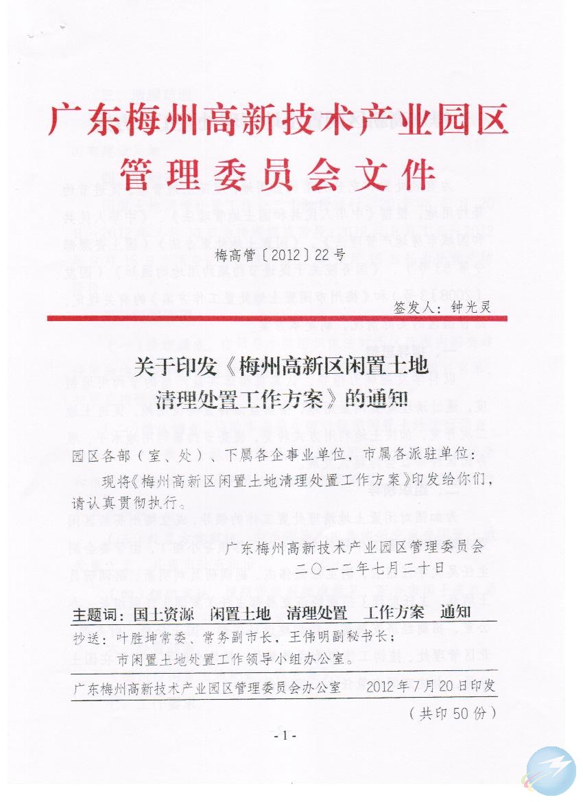 梅州市人民政府門戶網站 梅州市高新區 政策法規 關於印發《梅州高新區閑置土地清理處置工作方案》的通知