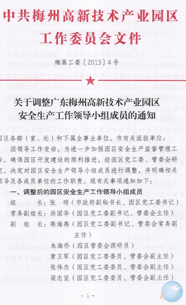梅州市人民政府門戶網站 梅州市高新區 政策法規 關於調整廣東梅州高新技術產業園區安全生產工作領導小組