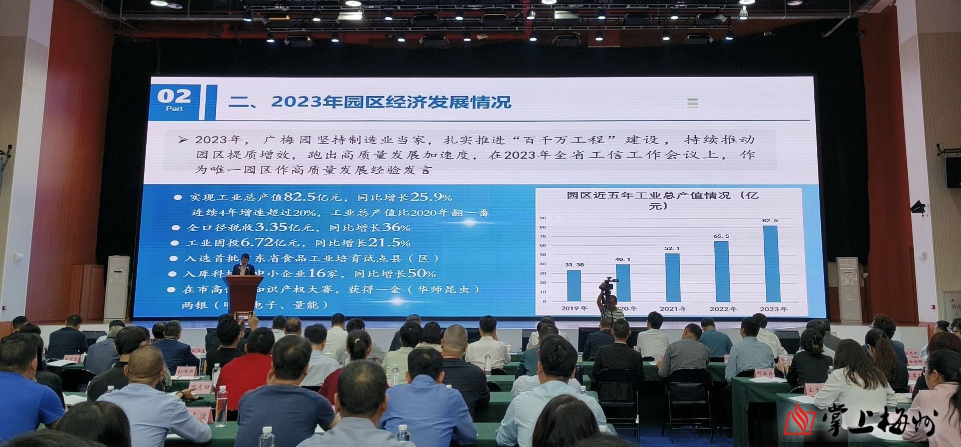 2023年,廣梅產業園堅持製造業當家,紮實推進“百千萬工程”建設,通過深化招商引資、畝均論英雄、營商環境改革以及平台提升,持續推動園區提質增效,跑出高質量發展加速度。全年工業總產值82.5億元,同比增長25.9%;自2020年連續4年增速超20%,工業總產值比2020年翻一番。全口徑稅收3.35億元,同比增長36%;工業固投6.72億元,同比增長21.5%。