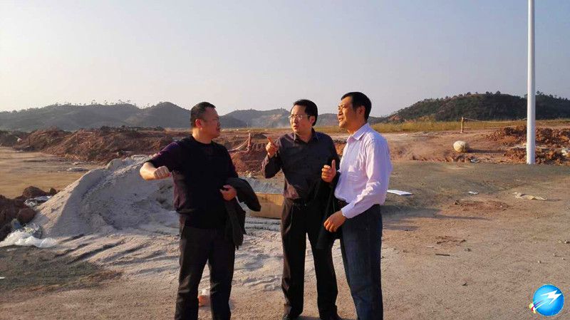 在二期建設現場,工程車來回穿梭,工人們繁忙工作,一片緊張忙碌的景象。談誌向、劉棕會等人走進工地,深入現場,認真察看項目建設進度,仔細了解項目建設中存在的困難和問題,並現場協調解決。