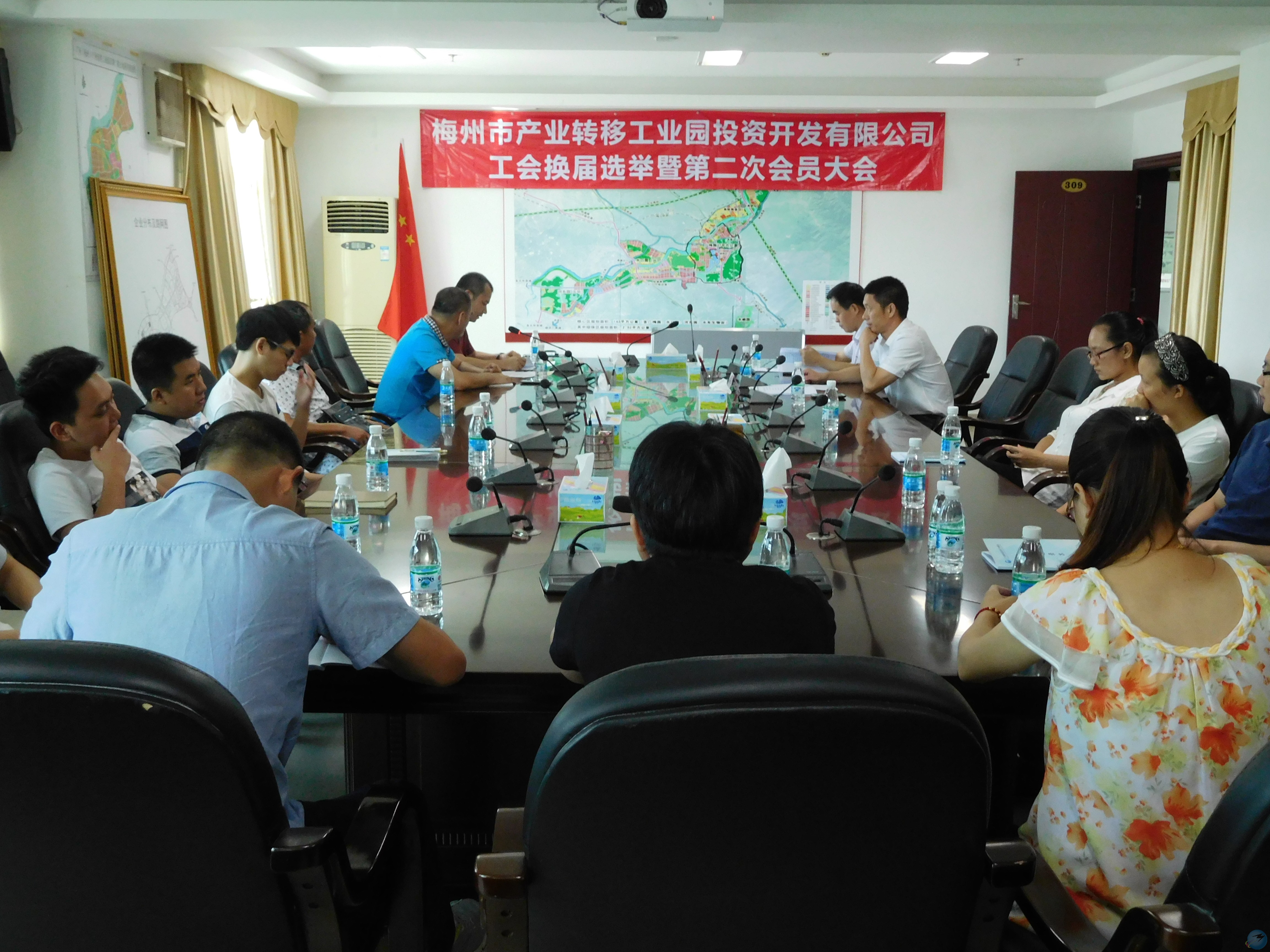 2016年6月22日(星期三)上午,園區管委會下屬國有企業:梅州市產業轉移工業園投資開發有限公司的全體員工在雄壯的國歌聲中順利完成了第二屆工會委員會、經費審查委員會換屆選舉大會係列議程。