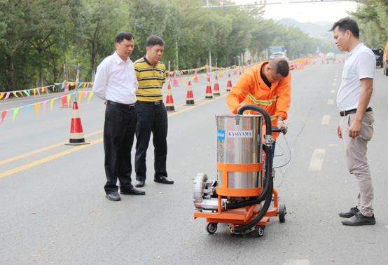 培訓中,參訓人員輪番使用切割機、液壓鎬、小型壓路機、擴縫機、灌縫機等新式養護機械,紛紛表示新養護機械省時省力、養護效果良好。