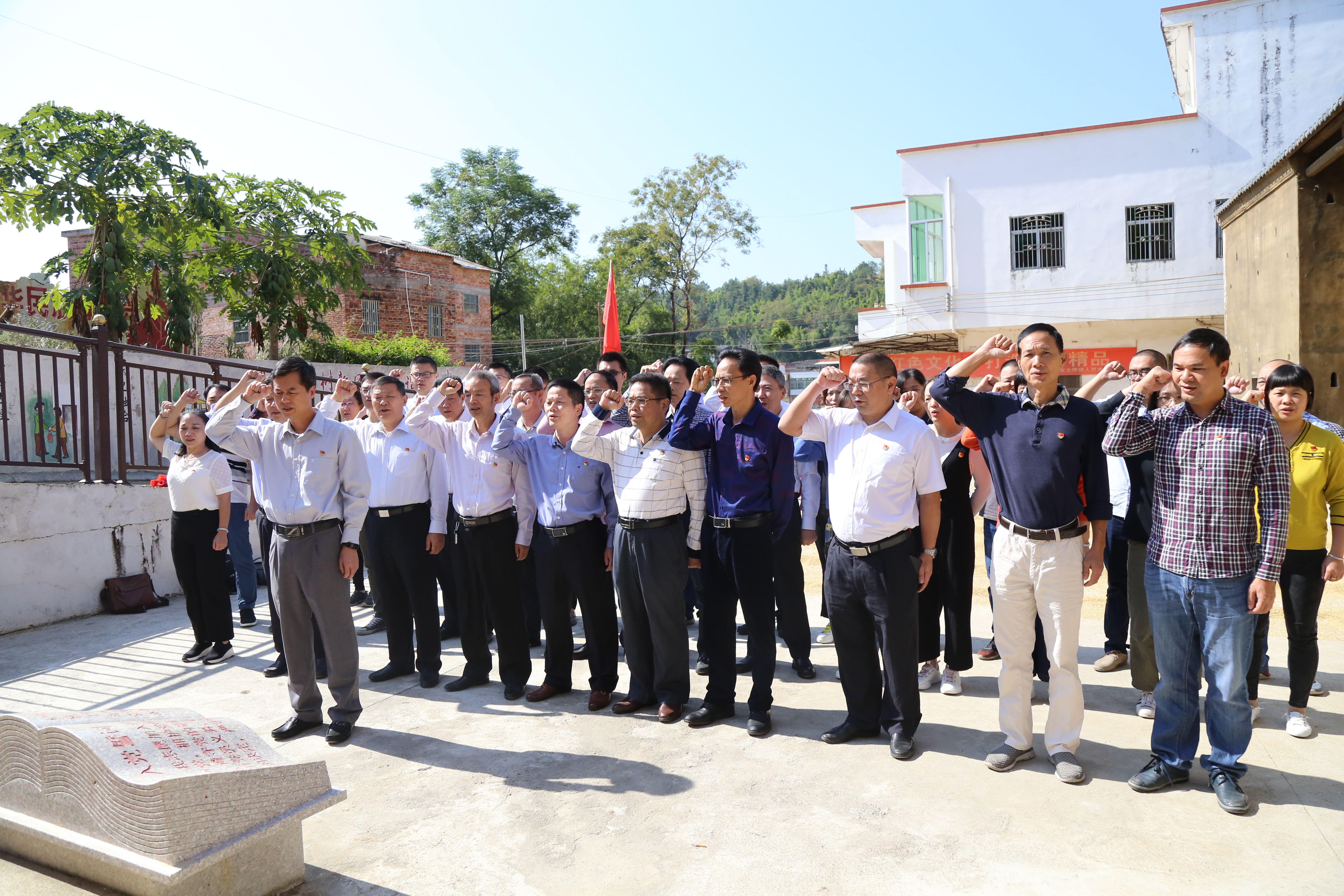 在羅屏漢故居門前廣場,王忠帶領全體黨員同誌麵對鮮紅的黨旗重溫了入黨誓詞。在羅屏漢烈士故居,全體幹部職工收看了羅屏漢烈士生平事跡影片,觀看了陳列的各種珍貴文物文獻、照片資料,聆聽了講解員的講解,共同追憶了羅屏漢等老一輩革命家浴血奮戰、意義非凡的武裝革命曆程。