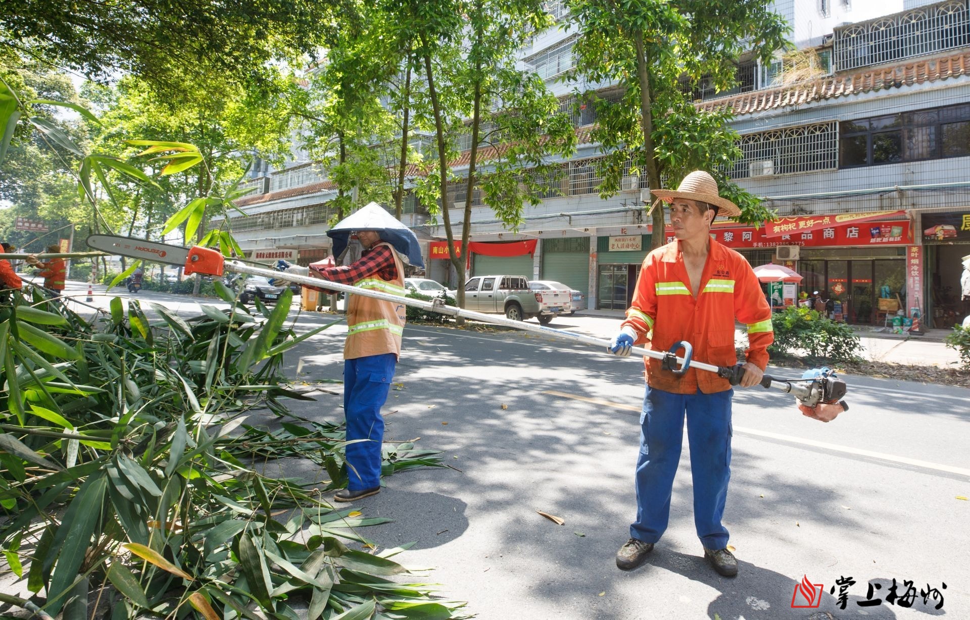 入伏當日,梅江公路事務中心白宮道班工人正在省道S333線白宮段修剪路樹,經過一上午的勞作,每個人工服上都是樹屑,汗水濕透了工服,豆大汗珠不斷從臉龐滾落。“長袖長褲是為了避免曬傷也避免修剪時被劃傷。麵對高溫天氣,我們也相應調整了上路工作的時間段。”白宮道班班長丘華榮說,雖然大家已經在這條路上工作了十幾年,已基本摸透了太陽日照規律,但有些時候總避不了暴曬。“有時在路樹遮擋下雖然能避免暴曬,但高溫路麵也非常考驗人,地表溫度突破50℃,即使站著不動也會大汗淋漓。”說話間,丘華榮拿出隨身攜帶水壺,這是一個容量為3升的巨大水壺,記者還留意到,他同事們攜帶水壺也基本是1.5升以上的大容量。“這個天,我們都習慣了‘大汗過細汗’,一天衣服起碼得換兩套,汗出得多,喝水也多。像我自己每天都得喝6升以上的水。”丘華榮說。