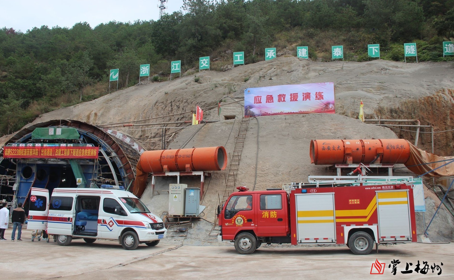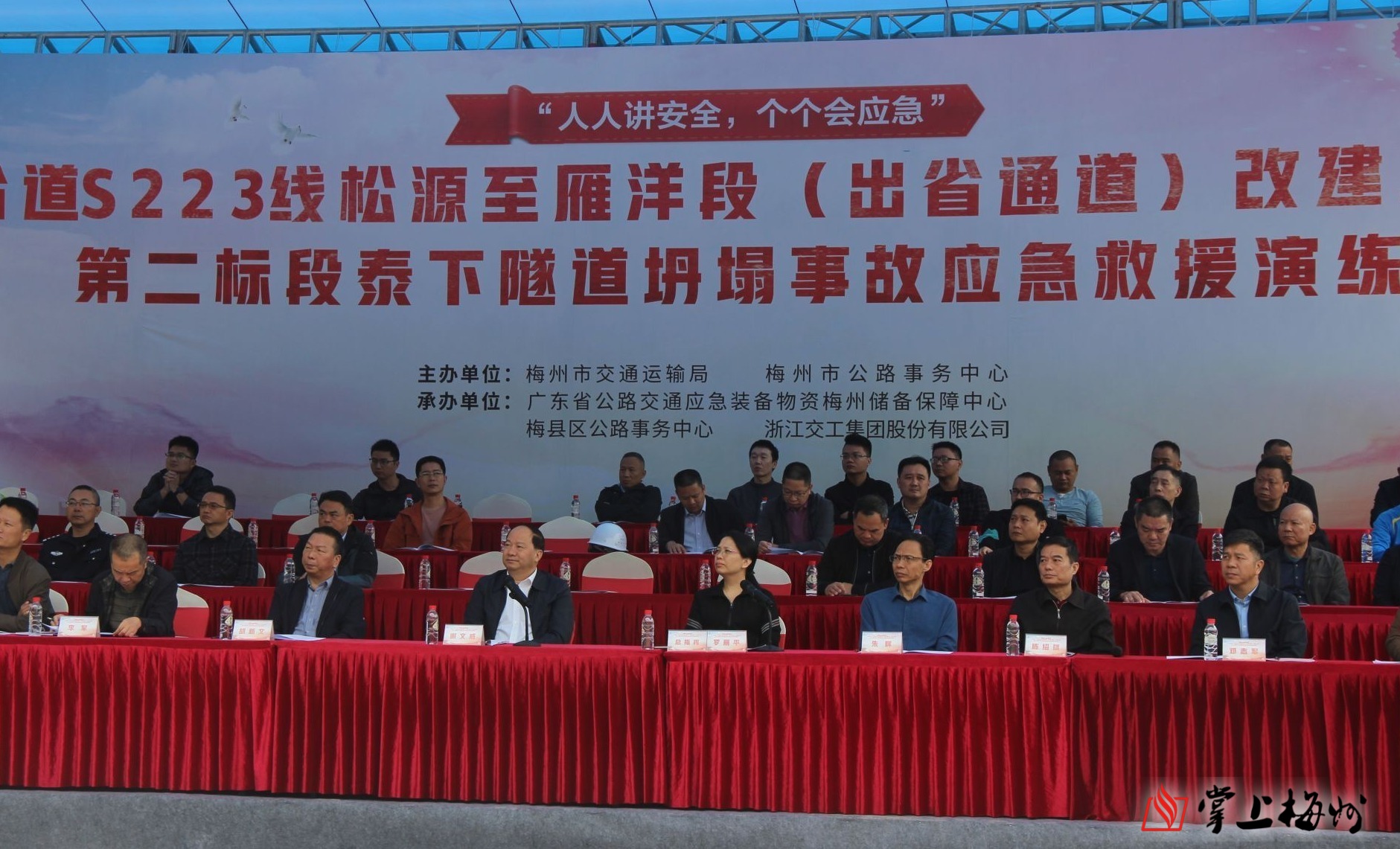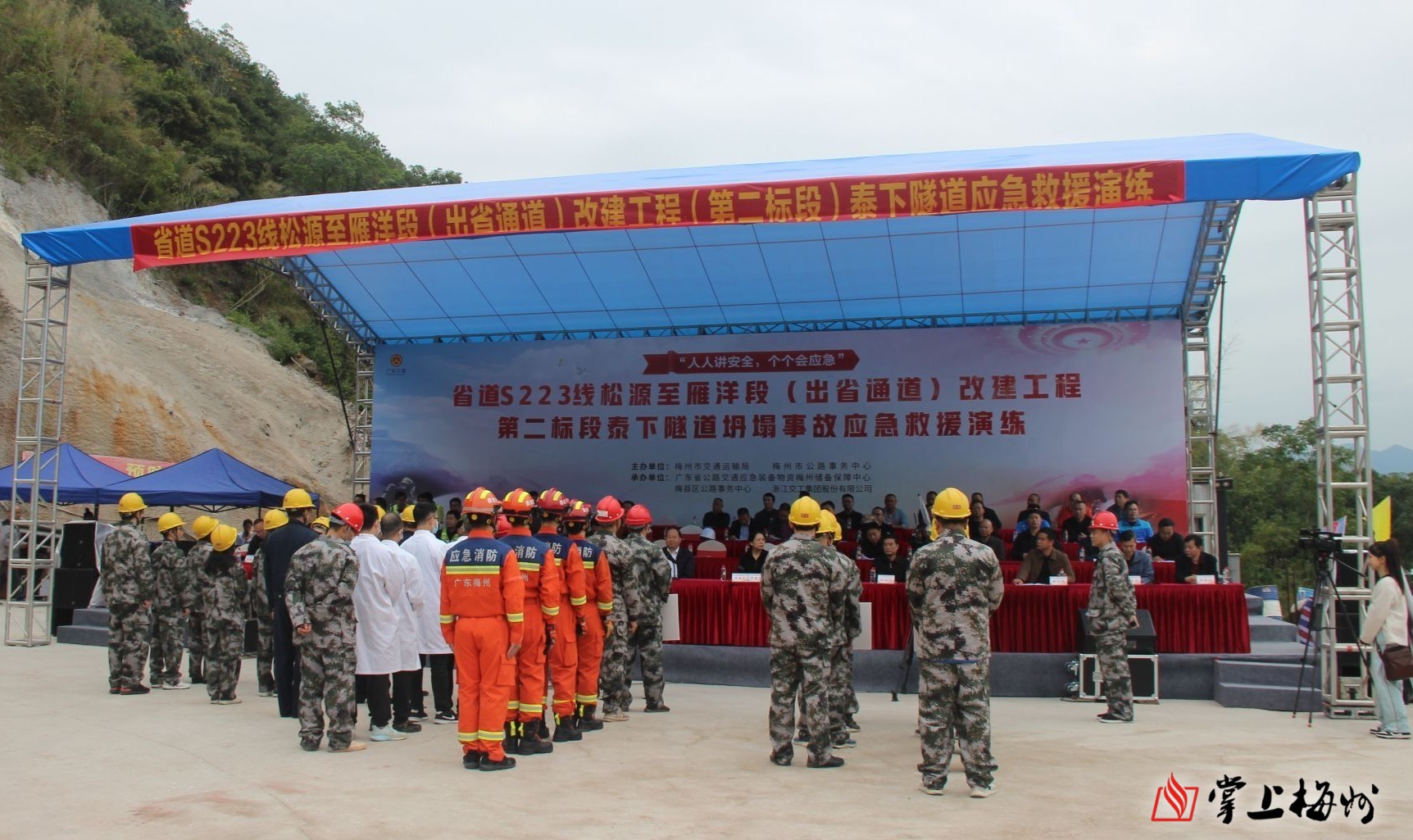 掌上梅州訊 14日,市交通運輸局、市公路事務中心聯合在省道S223線鬆源至雁洋段改建工程泰下隧道舉行公路隧道坍塌事故應急演練,以演築防,以練備戰,提高公路突發事件應急處置能力。