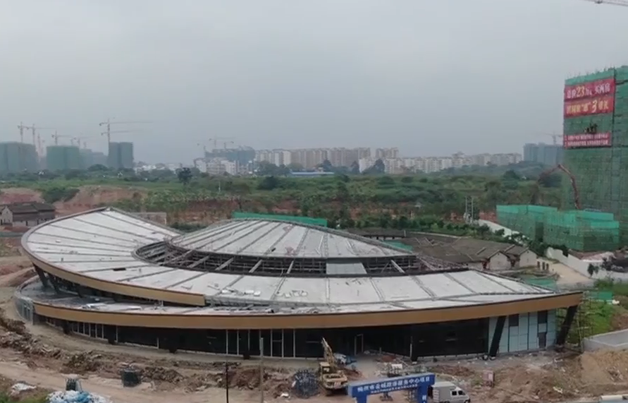在客都大道,富有客家特色的圓形和方形建築並排而立,這是新建的梅州市中心樞紐汽車站,總投資2.2億元。目前一期工程正在進行分步工程驗收,計劃今年底建築工程可竣工。