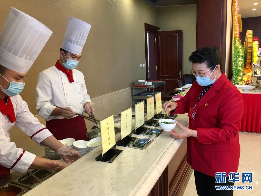 2020年10月29日,受邀列席黨的十九屆五中全會的基層社區工作者吳亞琴在京西賓館餐廳取了一份小碗麵。她表示:“盛麵的碗也都是小碗,吃多少打多少。”新華社記者 朱基釵 攝