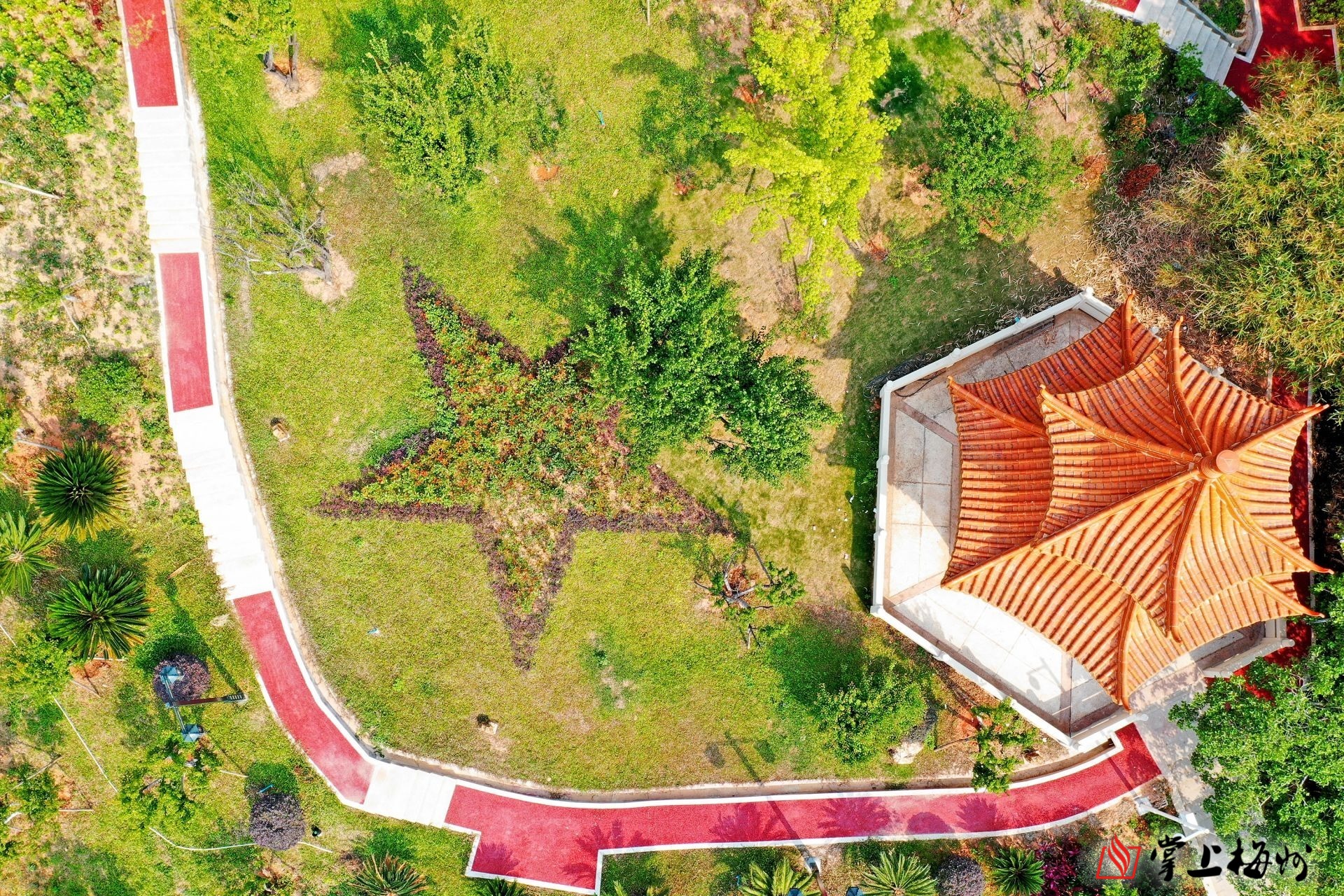 梅州市紅色文化公園登山步道旁的五星花卉造型。