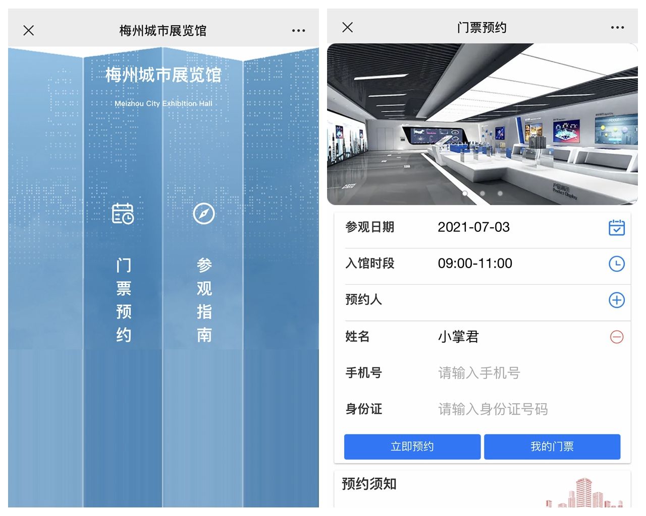 掌上梅州訊記者獲悉,梅州城市展覽館已於近日開始試運行,向市民、遊客免費開放。為做好疫情防控,保障遊客健康安全,營造良好的觀展環境,該館采取“錯峰、預約、限流”的方式實行實名製入館參觀管理。展館工作人員提醒,試運行期間,為科學引導參觀,預約規則會根據實際情況適時進行調整,擬前往參觀的市民可提前關注“梅州城市展覽館”公眾號,閱讀參觀須知,並在公眾號進行網上預約。