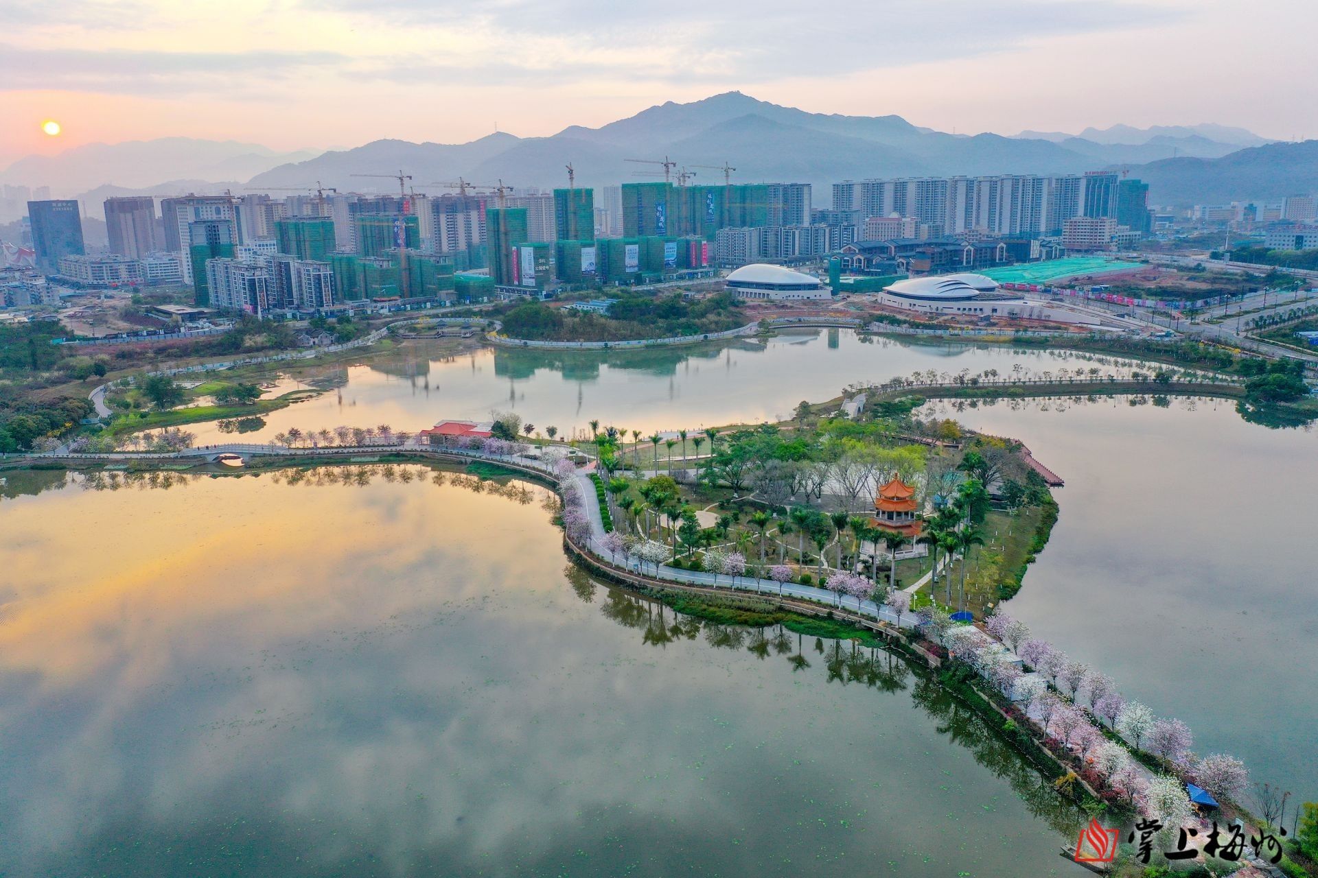 位於江南新城中軸線起點和核心地帶的劍英公園成為市民休閑娛樂的好去處。 (高訊 攝)