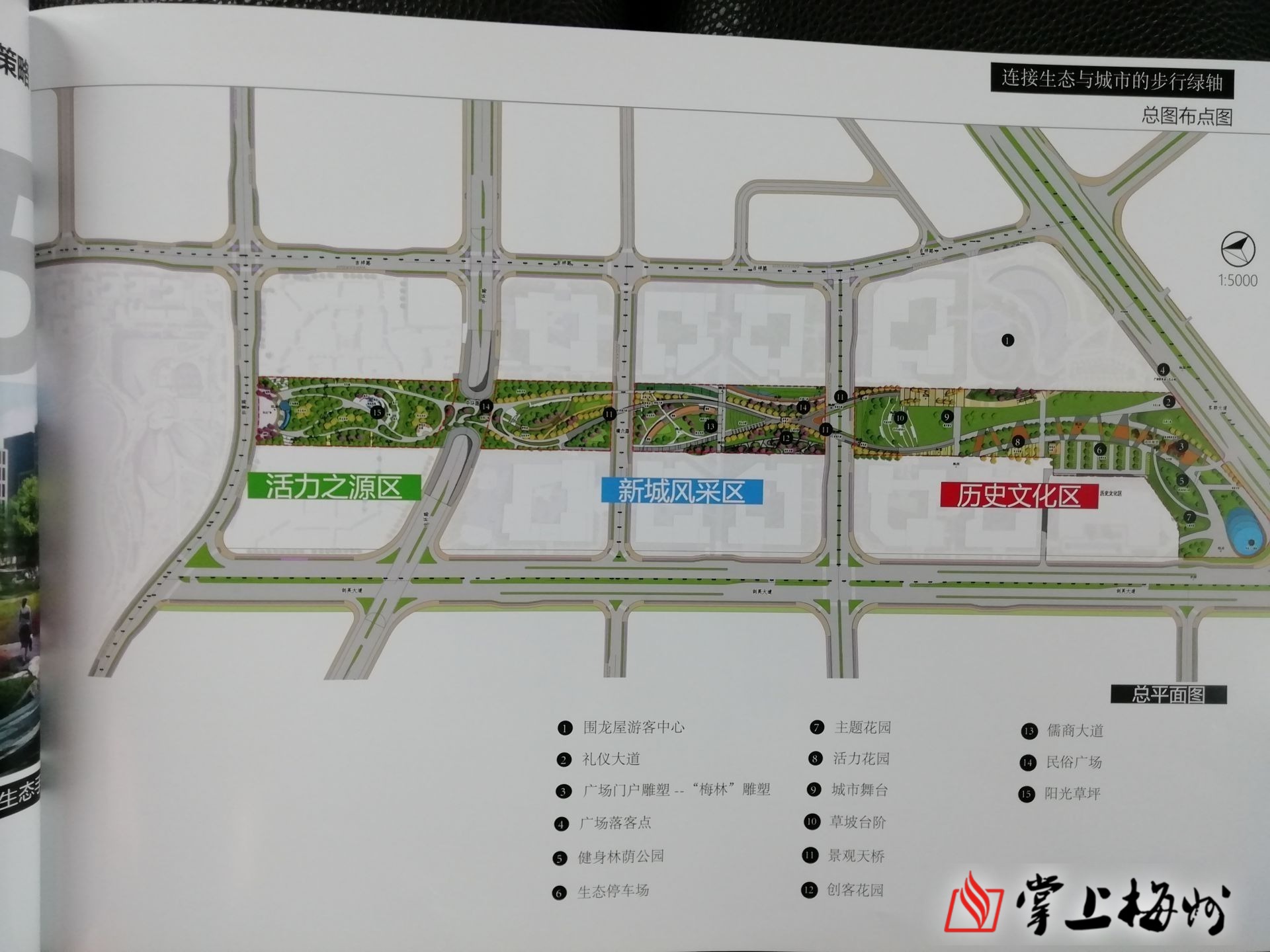 據了解,綠軸南至客都大道、北至如意路,東至規劃用地紅線、西至規劃用地紅線,鄰近劍英公園、兩館一場、火車站、水白中學。總用地麵積123621平方米,共分為三個分區,分別為:曆史文化區新城風采區、活力之源區。其中,曆史文化區總用地麵積64891平方米、新城風采區總用地麵積38036平方米、活力之源區總用地麵積20694平方米。