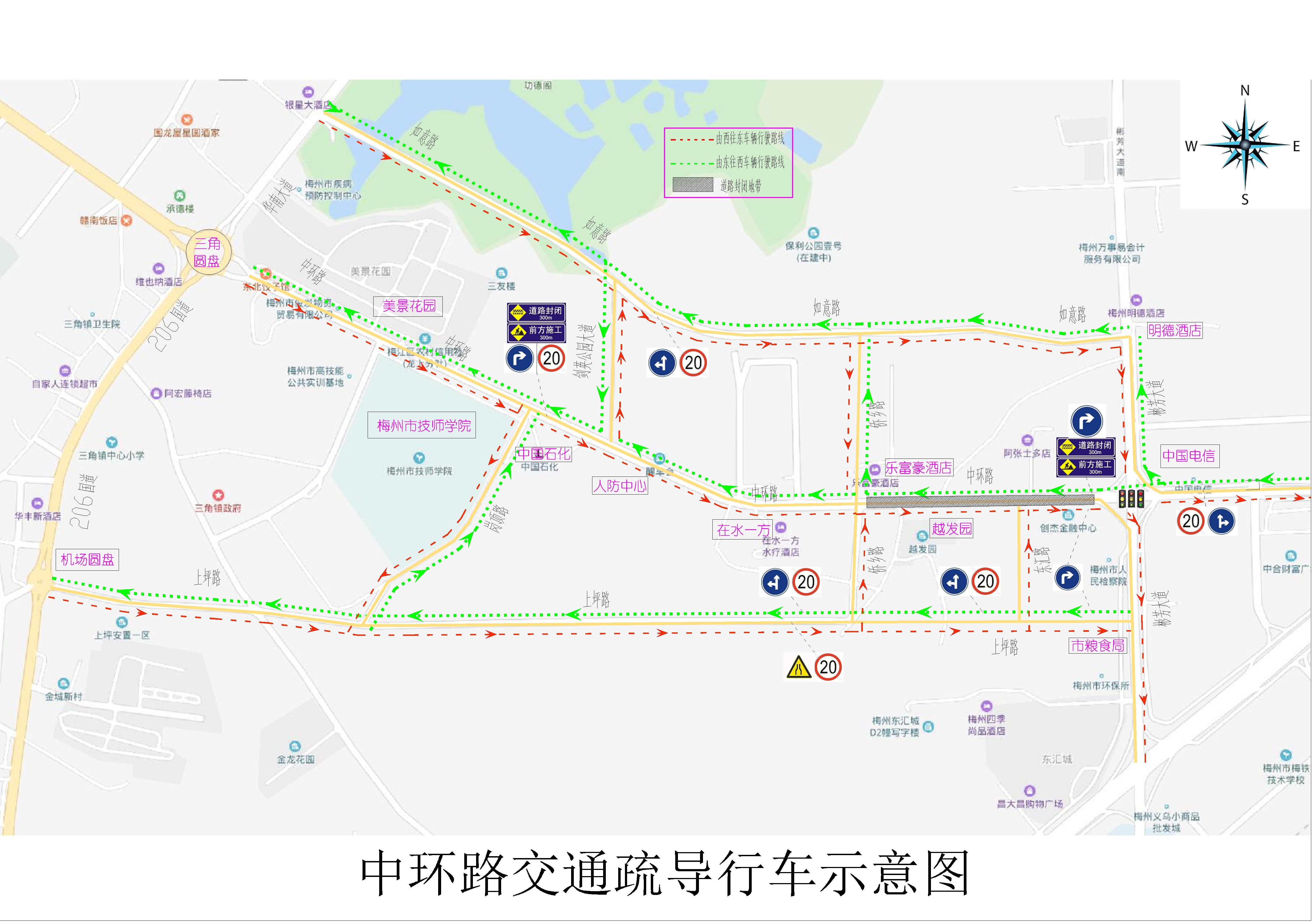 為加快江南新城建設步伐,根據市委、市政府的部署要求,結合工程建設進度安排,江南新城中環路道路及地下綜合管廊項目將於近期全麵建設,中環路原樂富豪酒店至彬芳大道段將圍蔽施工,屆時機動車輛及行人需繞道通行。經與市交警、城綜及梅江區三角鎮政府等部門共同研究,確定了中環路道路管廊施工期間的交通疏解的方案。現將道路節點封閉時間和繞行措施通告如下: