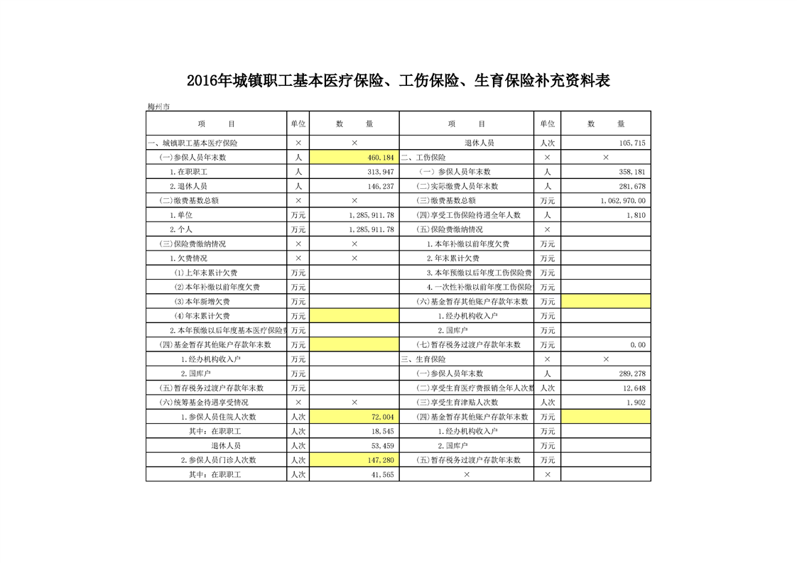 梅州市人民政府門戶網站 梅州市財政局 2016年度 2016年城鎮職工基本醫療保險、工傷保險、生育保險補充資料表