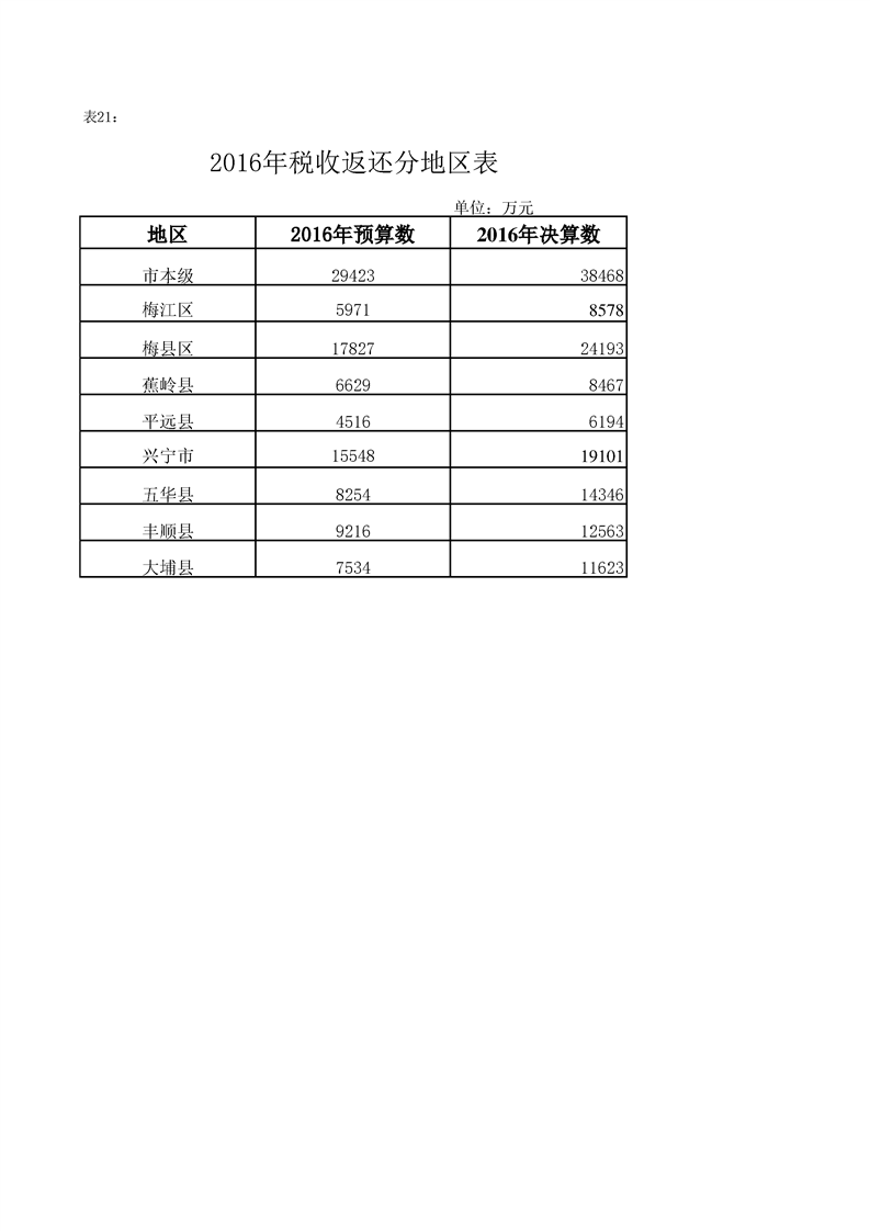梅州市人民政府門戶網站 梅州市財政局 2016年度 2016年稅收返還分地區表21