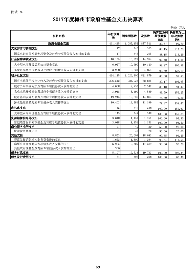 梅州市人民政府門戶網站 梅州市財政局 2017年度 附表18:2017年梅州市基金支出決算表