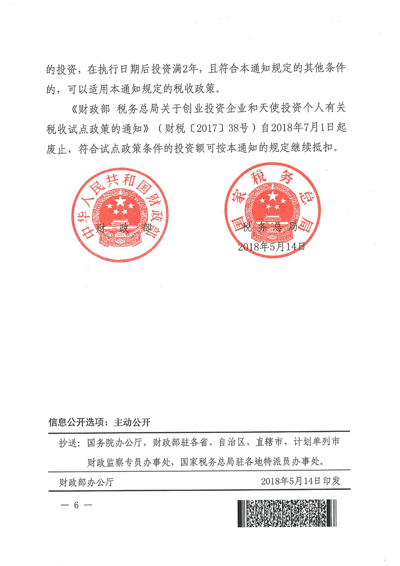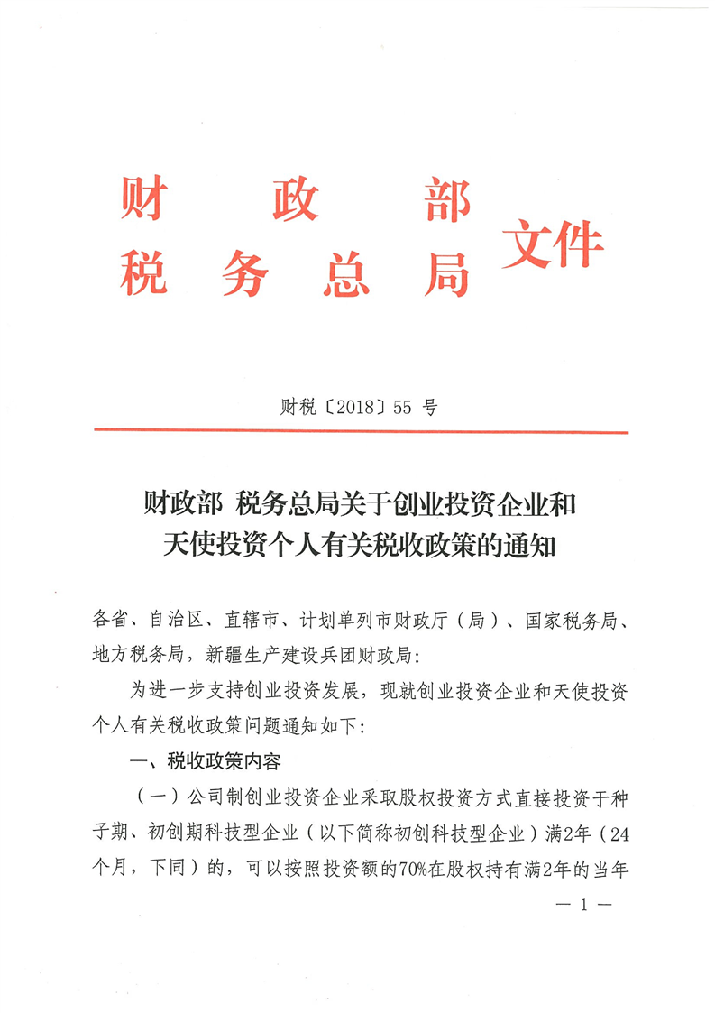 財政部 稅務總局關於創業投資企業和天使投資個人有關稅收政策的通知