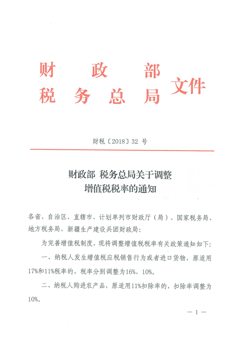 梅州市人民政府門戶網站 梅州市財政局 稅收政策 財政部 稅務總局關於調整增值稅稅率的通知