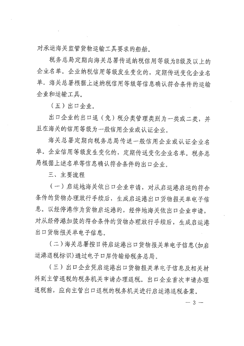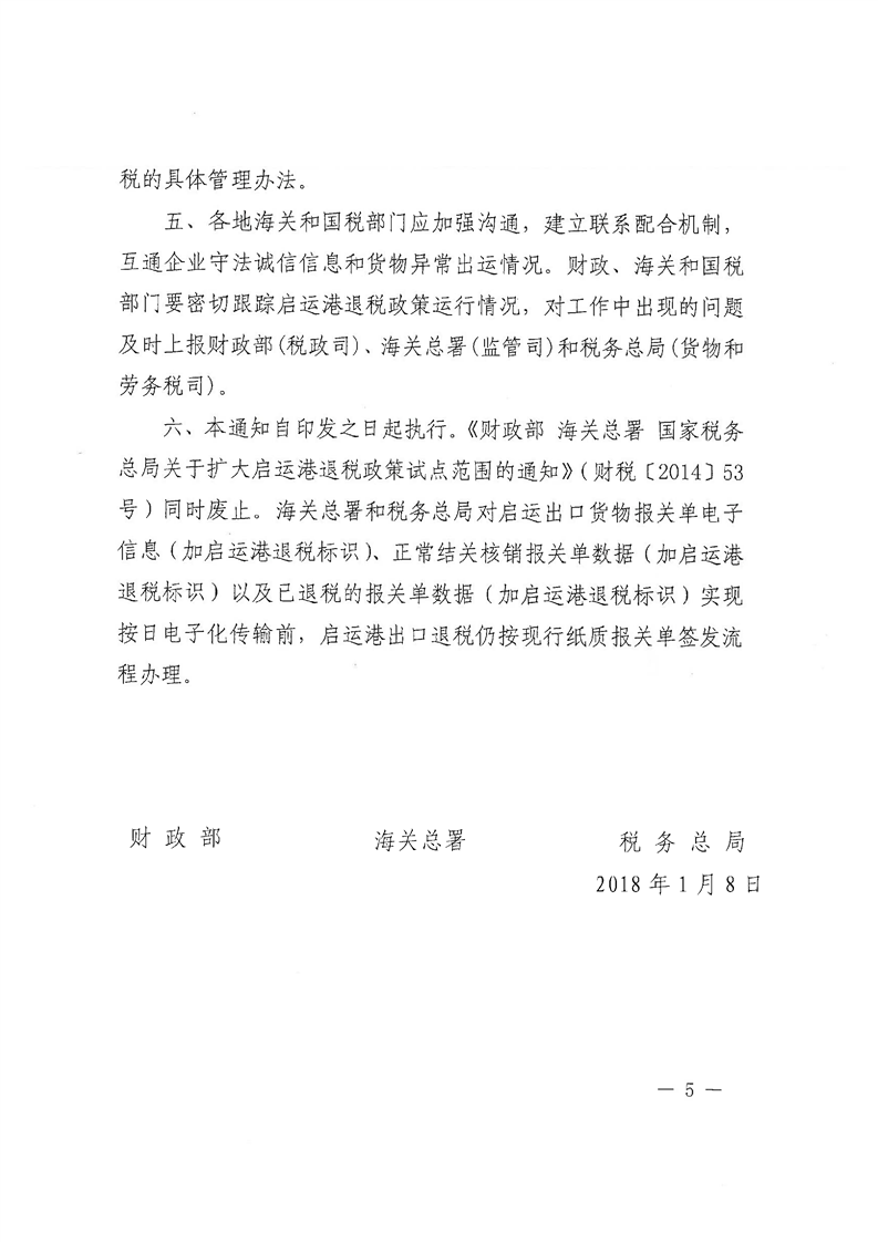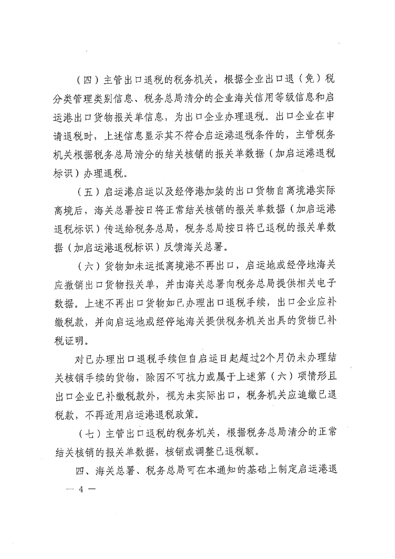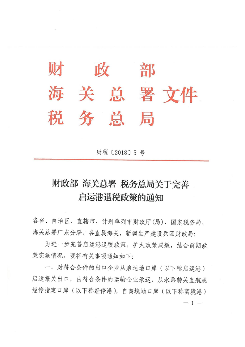 梅州市人民政府門戶網站 梅州市財政局 稅收政策 財政部 海關總署 稅務總局關於完善啟運港退稅政策的通知