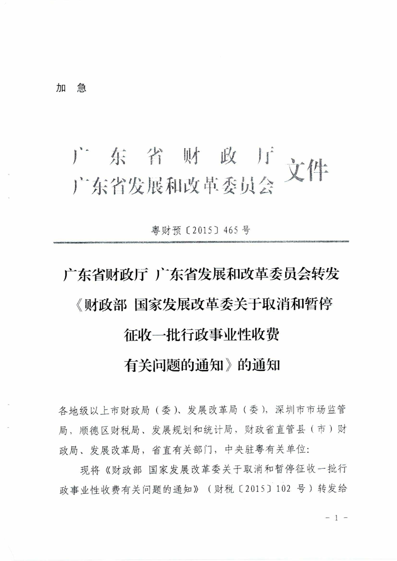 轉發廣東省財政廳 廣東省發展和改革委員會關於取消和暫停征收一批行政事業性收費有關問題的通知 梅市財預[2015]94號