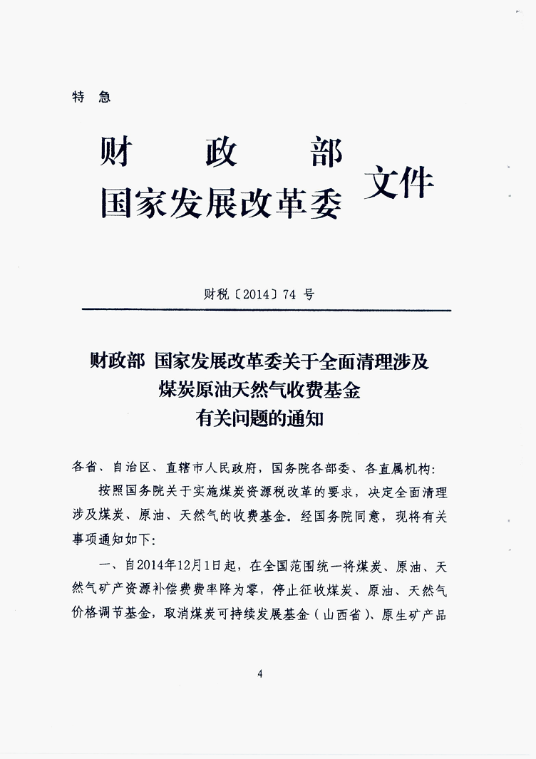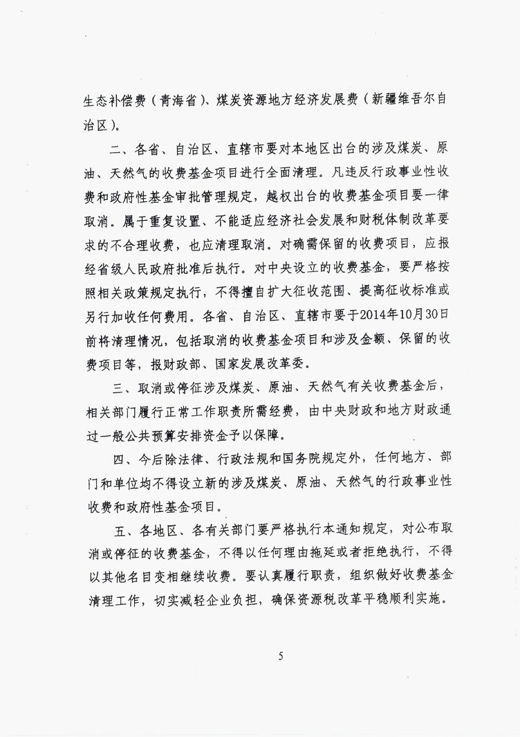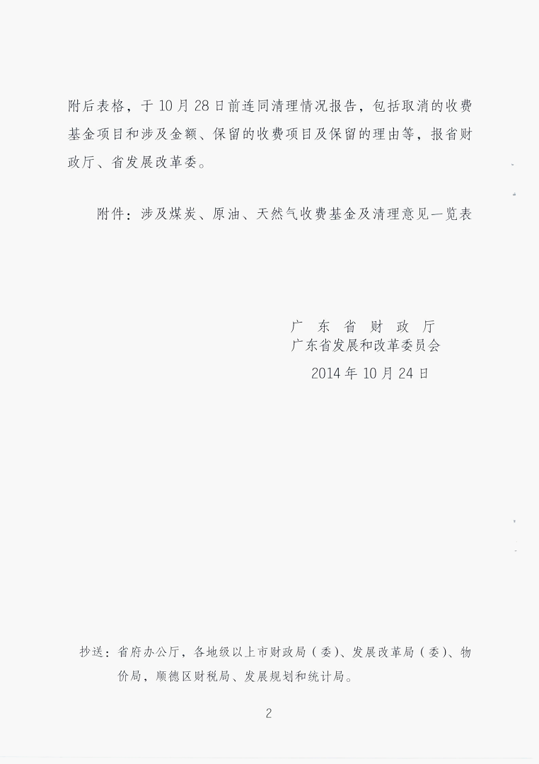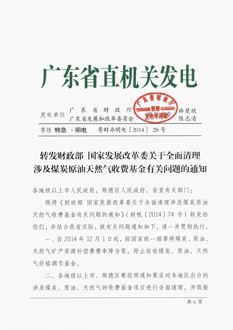 轉發財政部 國家發展改革委關於全麵清理涉及煤炭原油天然氣收費基金有關問題的通知 粵財辦明電[2014]28號