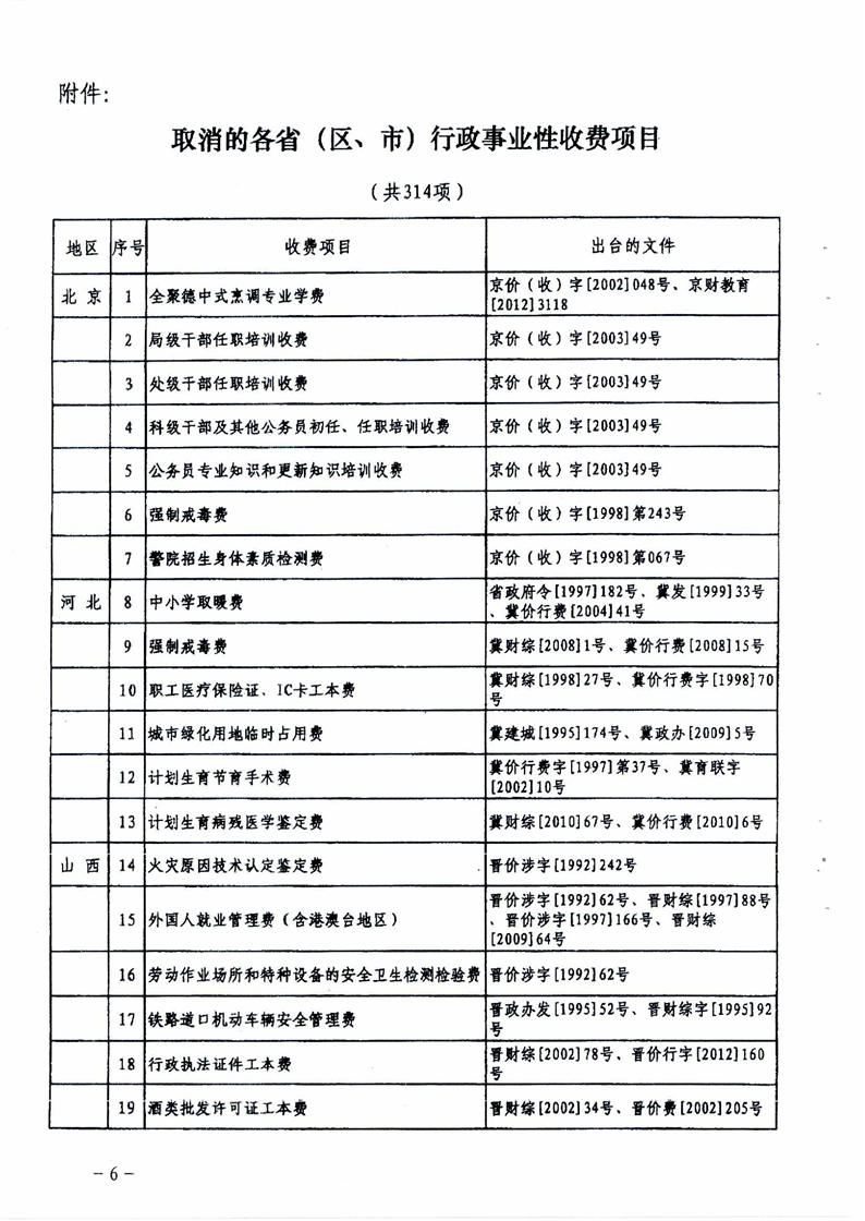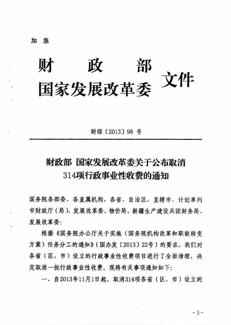 轉發省財政廳 省物價局《轉發財政部 國家發展改革委關於公布取消314項行政事業性收費的通知》 梅市財綜[2013]63號