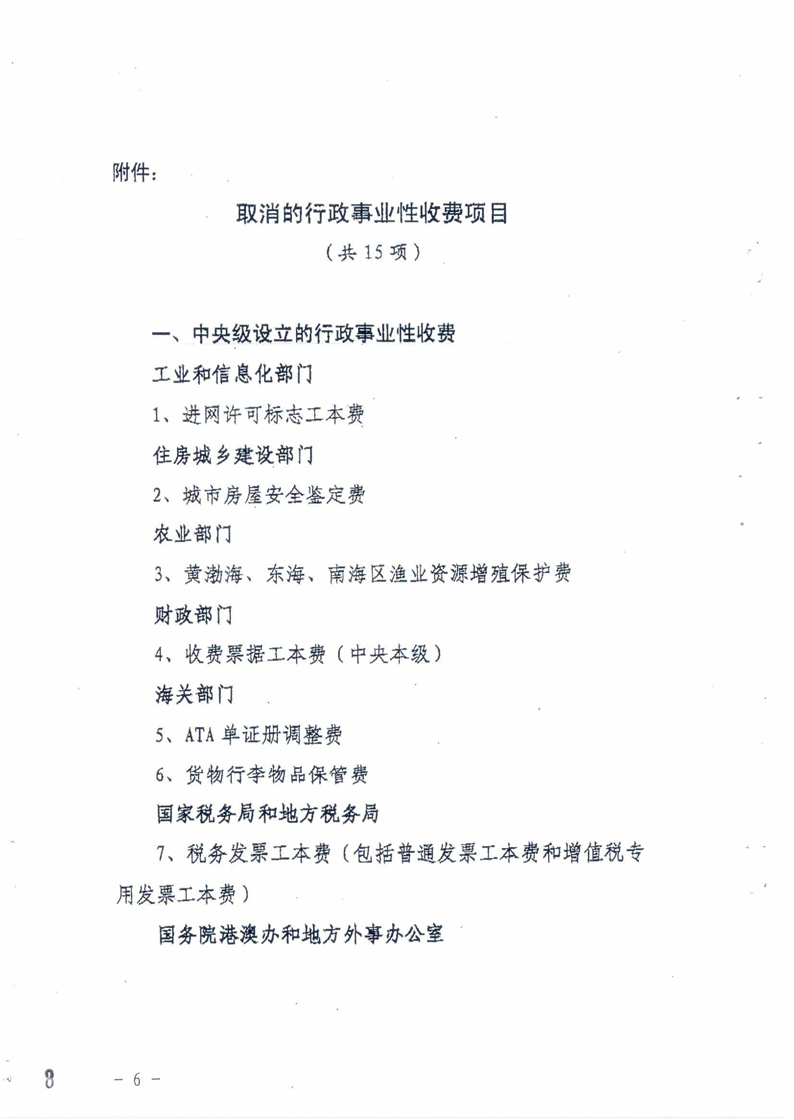行政事業性收費及政府性基金