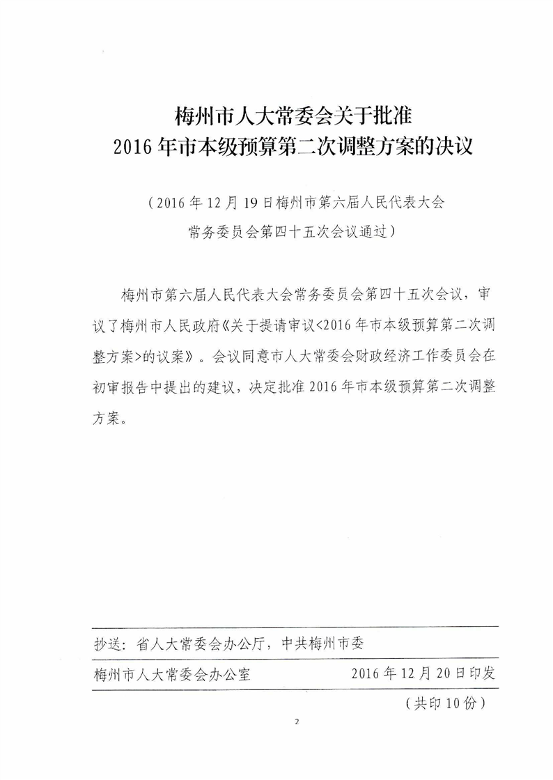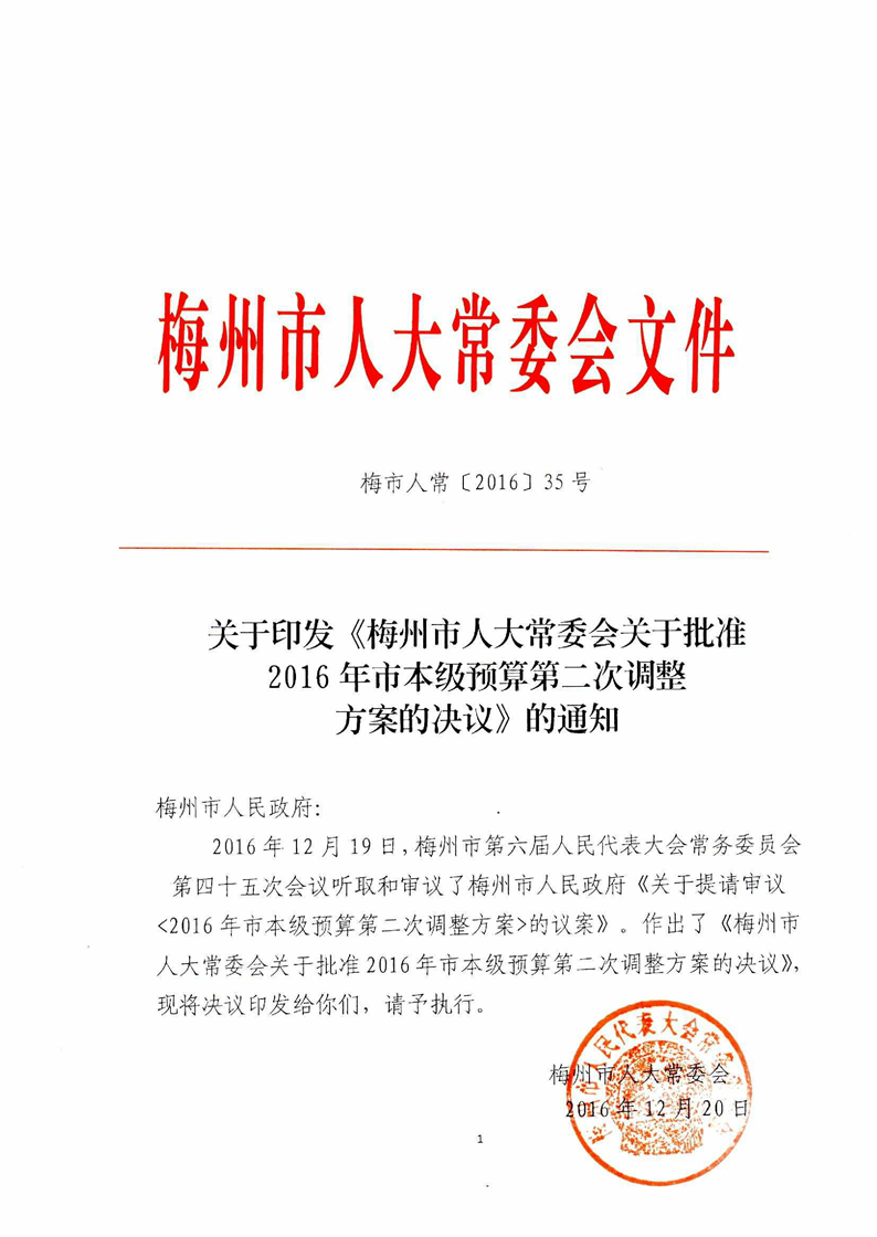梅州市人民政府關於提請審議2016年