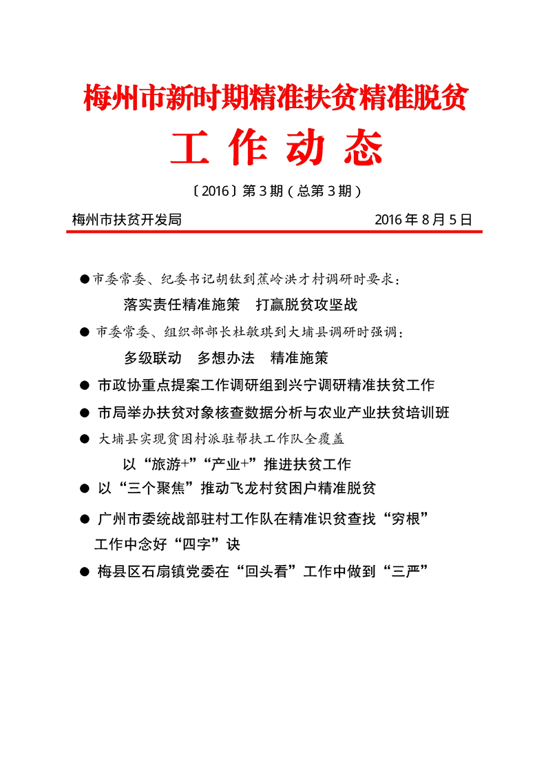 梅州市人民政府門戶網站 梅州市財政局 部門文件 《梅州市新時期精準扶貧精準脫貧工作動態》2016年第3期