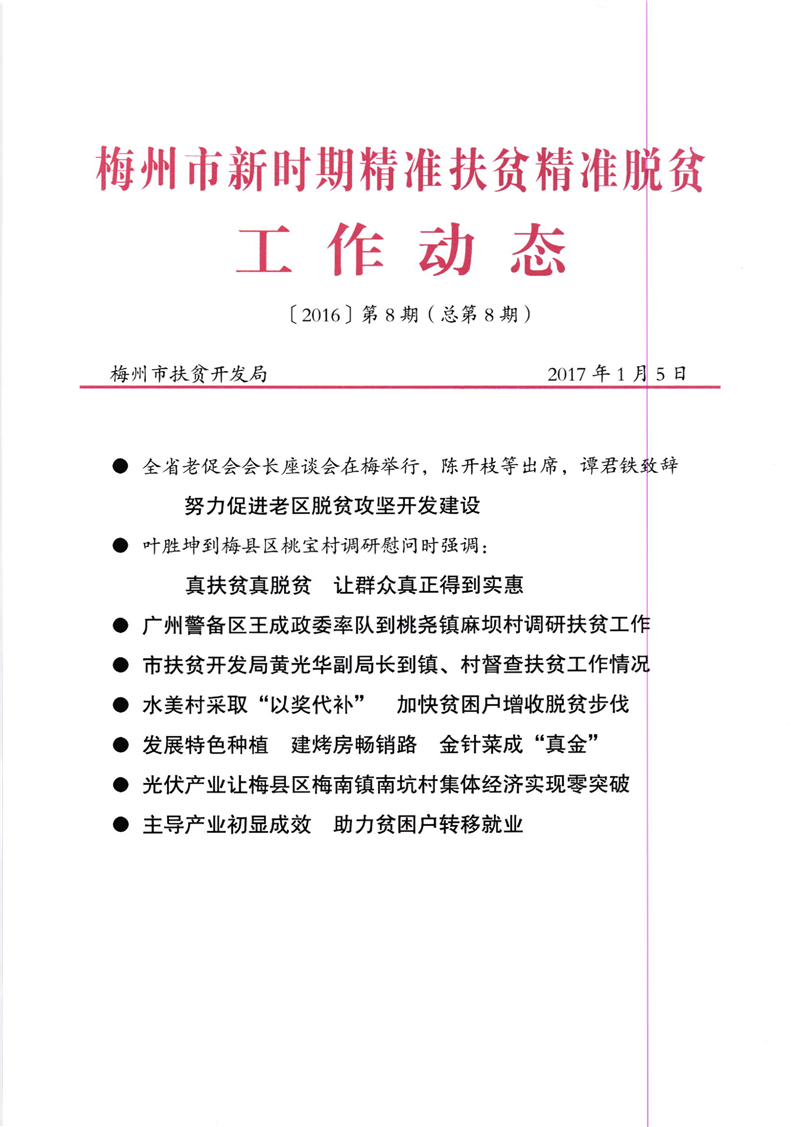梅州市人民政府門戶網站 梅州市財政局 部門文件 梅州市新時期精準扶貧精準脫貧工作簡報(2016)第8期