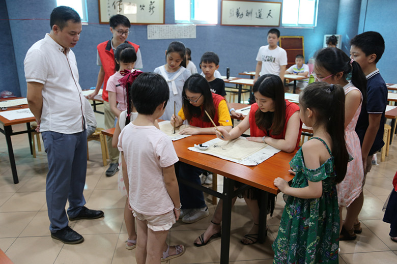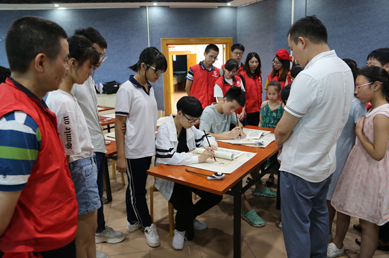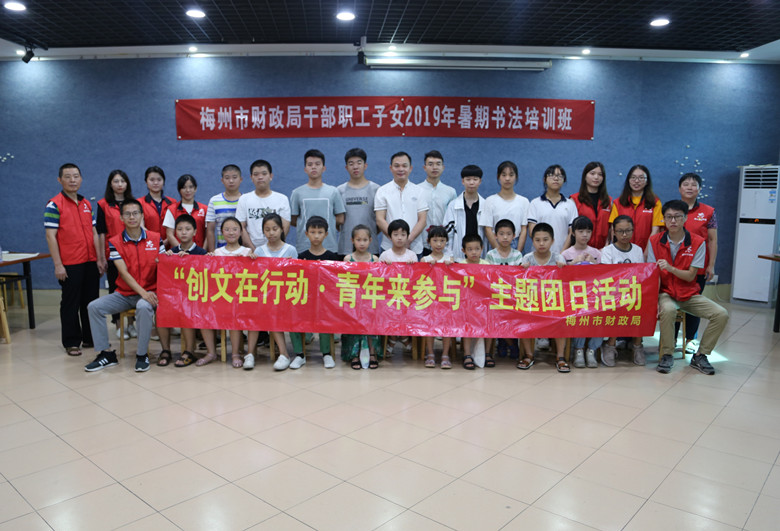 為傳承中華優秀傳統文化,培養青少年熱愛書法藝術的興趣和提高書法藝術修養,2019年7月15日上午,梅州市財政局組織10名青年誌願者,到梅州市華僑博物館開展“創文在行動·青年來參與”誌願服務主題團日活動,給正在那兒進行書法培訓的青少年送去了學習書法用的練習字貼、紙、毛筆和墨水等,誌願者還與學習書法的青少年座談交流,並向他們講解學習書法的目的和意義,勉勵他們在練習書法的同時,要加強對中華優秀古詩詞的學習和理解。愛好書法的青年誌願者還在現場傳授練習書法的技巧和心得。
