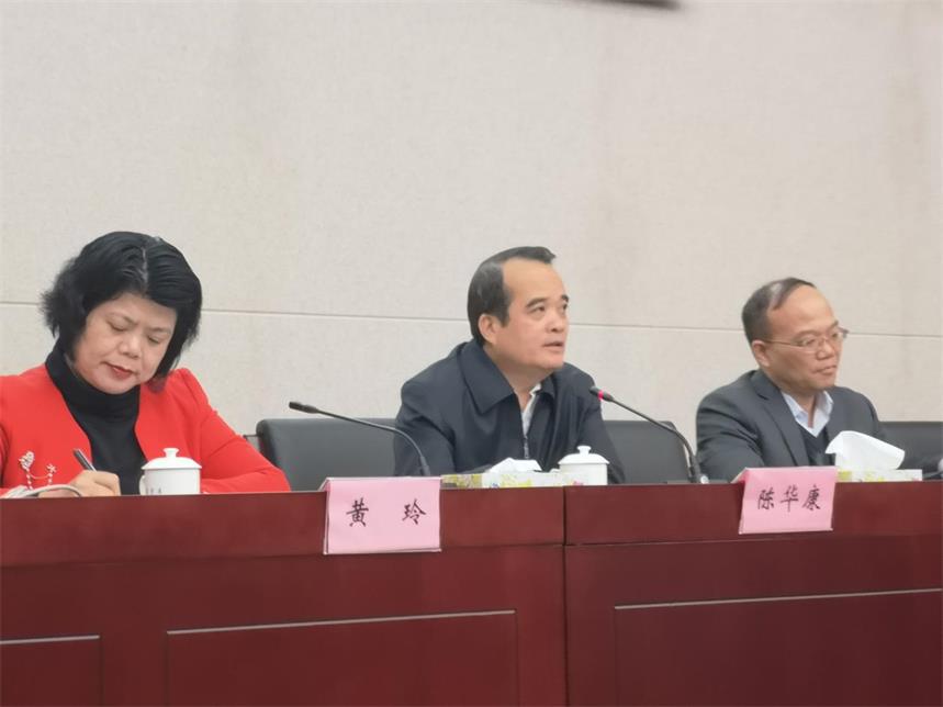 同時,陳華康還通報了2019年全省地方誌工作思路及重點工作。他指出,要以習近平新時代中國特色社會主義思想為指導,全麵貫徹落實習近平總書記對廣東重要講話和重要指示批示精神,全麵貫徹實施《廣東省地方誌工作條例》和省委辦公廳、省政府辦公廳《關於進一步加強新時代地方誌工作的通知》,開展《條例》推進年活動,依法治誌,以改革開放的思維,主動融入改革開放大局,推動地方誌工作改革創新、開放發展、轉型升級、實現“三服務”。重點做好深入推進誌鑒擴麵提質,加大自然村普查成果開發力度,大力推進地方誌文化數字化,拓展地方誌文化推介渠道和形式,全力推動方誌館建設,大力推進能力建設,加強黨的領導和黨的建設,落實管黨治黨責任。