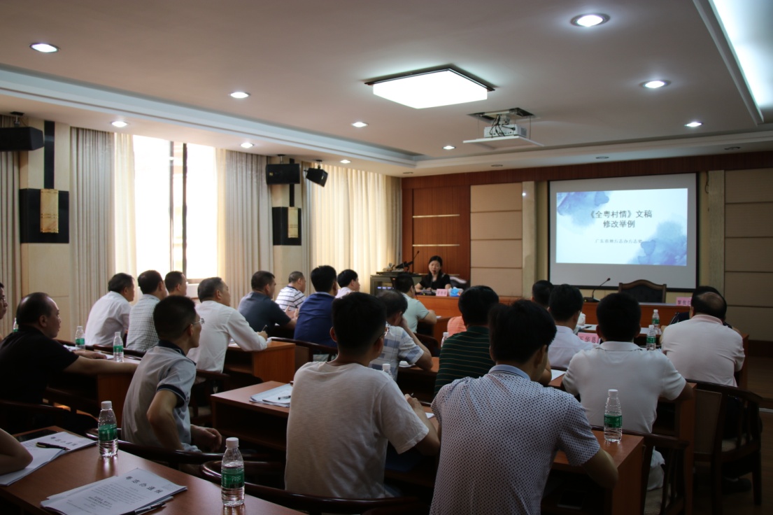 首先,黎俊紅副主任彙報了當前全市自然村落曆史人文普查工作開展的基本情況。目前梅州市在全省普查工作進度排名中位列中上水平,取得了一定的成績。但全市在送出版的《全粵村情》文稿中,仍發現不少問題,為提高全市文稿質量,順利完成《全粵村情》梅州各卷的出版任務,市方誌辦特別邀請省方誌處文稿專家蕭豔娥副處長作《全粵村情》梅州文稿專題輔導培訓。