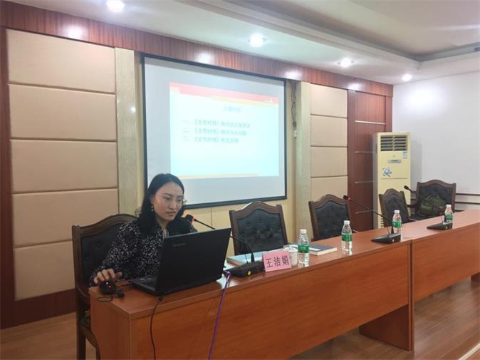 隨後,王潔娟科長介紹了《全粵村情》梅州卷送出版情況,及梅州文稿存在的普遍問題,具體從梅州市送省出版文稿中存在的圖片、隸屬關係、基礎設施、人口、民間信仰等8個方麵,深入淺出、圖文並茂講解文稿修改的具體要求和做法,收到了很好的效果。