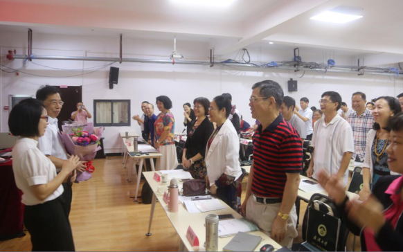 開班日適逢教師節,學員代表劉衛、黃玲分別向授課老師熊建生、張掌然教授獻花,培訓班學員集體起立,誦讀韓愈《師說》並祝老師節日快樂!