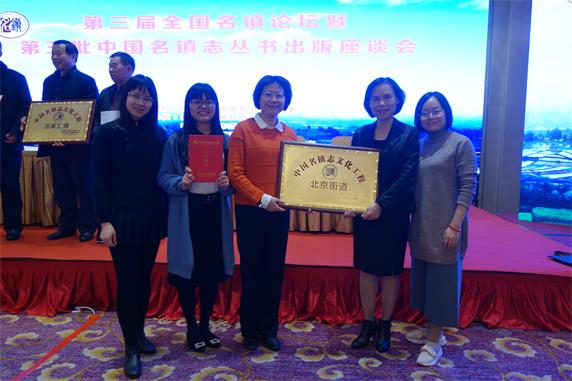 廣東省《北京街道誌》入選中國名鎮誌文化工程第三批中國名鎮誌叢書。開幕式首先播放了廣州市越秀區北京街道的宣傳片。梁玉瓊代表北京街道辦事處上台領取了第三批中國名鎮誌叢書編纂單位授牌和證書。學術交流環節,郭豔玲主任作為第三批中國名鎮誌叢書編纂單位代表作經驗交流。
