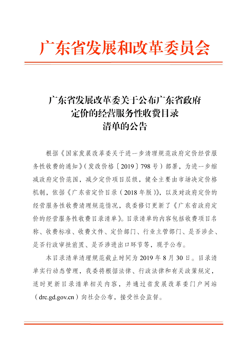 梅州市人民政府門戶網站 梅州市發展和改革局 定價目錄 廣東省發展改革委關於公布廣東省政府定價的經營服務性收費目錄清單的公告
