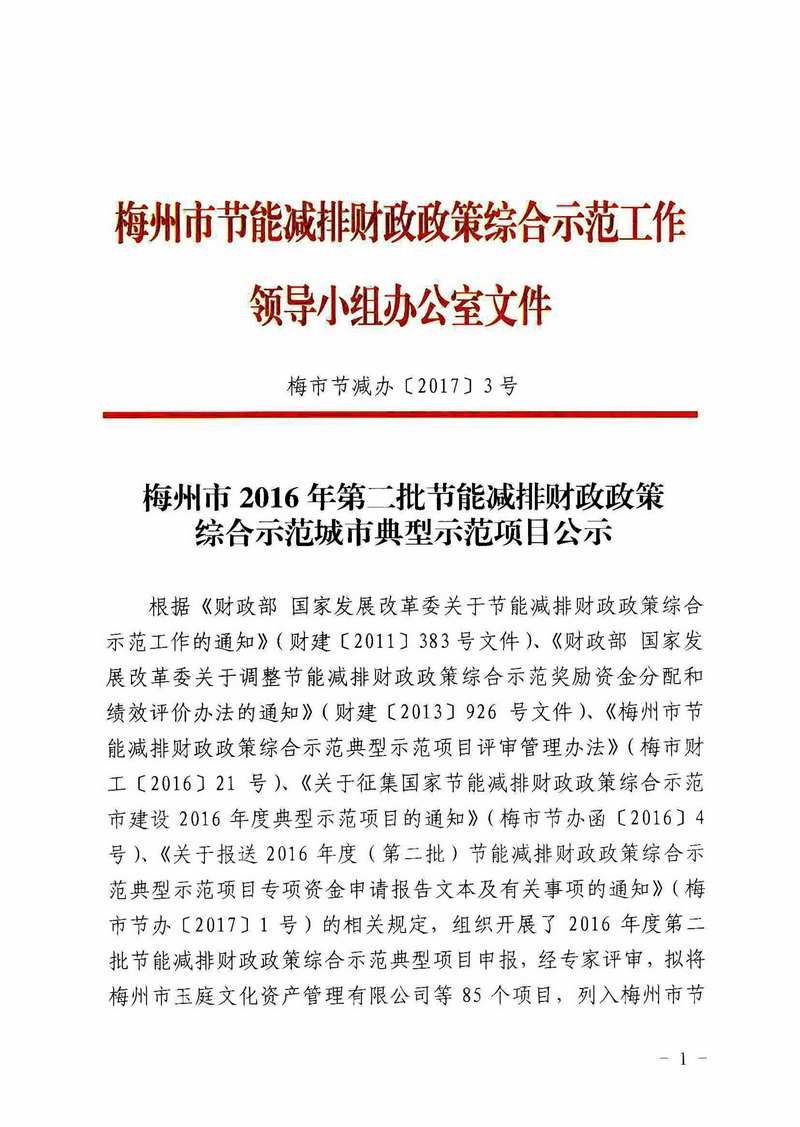 梅州市人民政府門戶網站 梅州市發展和改革局 部門文件 梅州市2016年第二批節能減排財政政策綜合示範城市典型示範項目公示