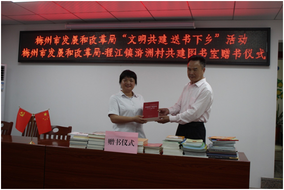 日前,梅州市發展和改革局黨組書記、局長張勁龍親臨現場,與滸洲村楊明會書記一起為“梅州市發展和改革局-滸洲村共建圖書室”揭幕,並舉行圖書捐贈儀式。